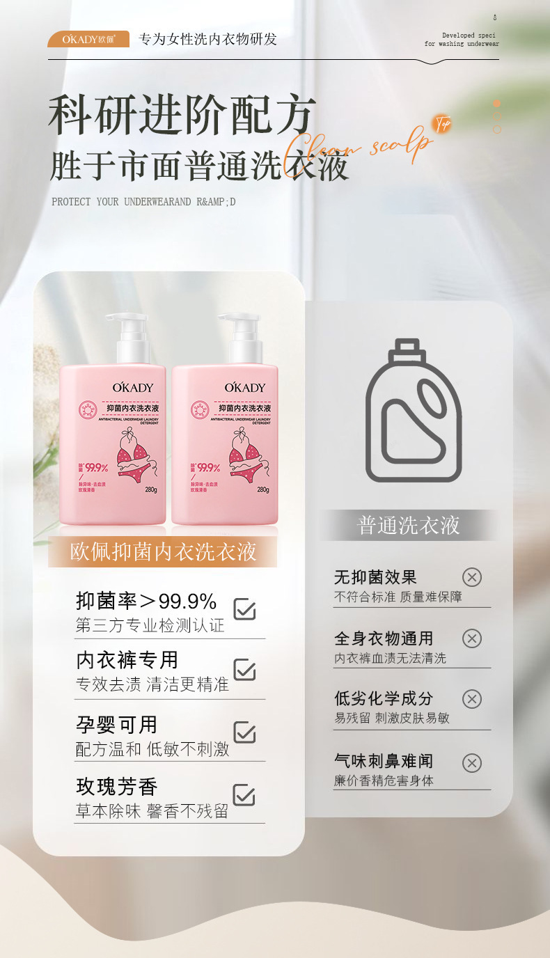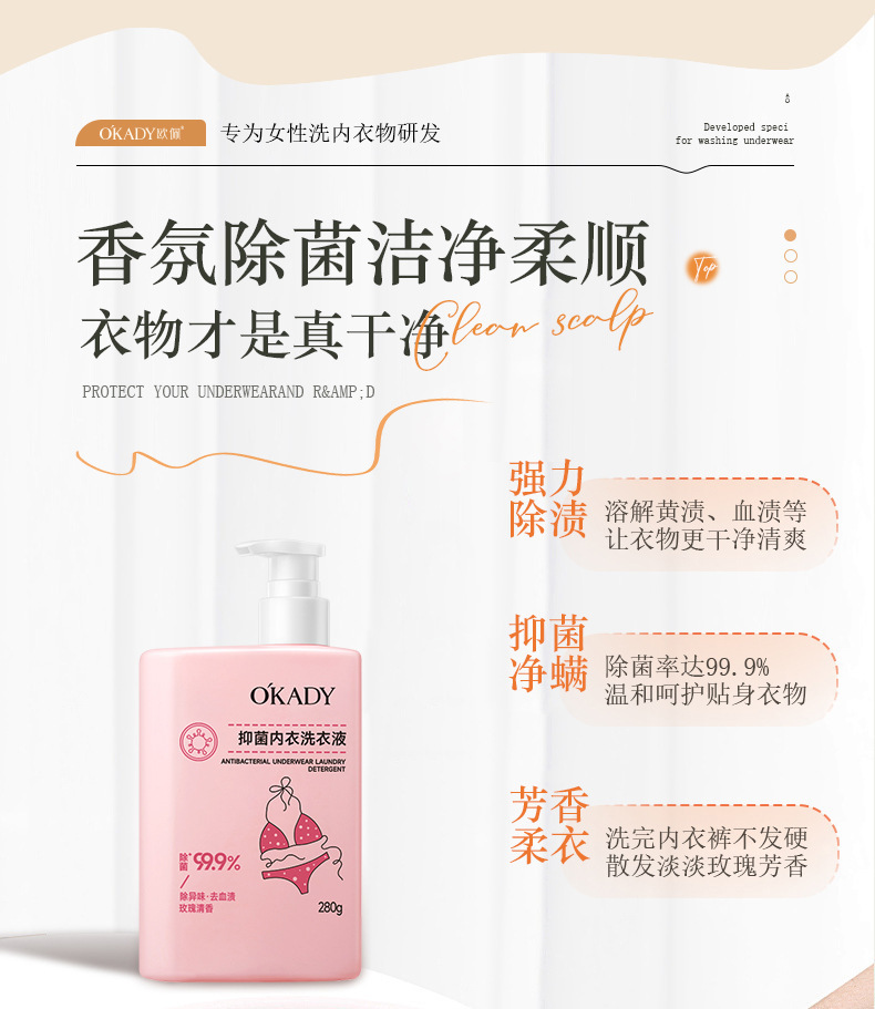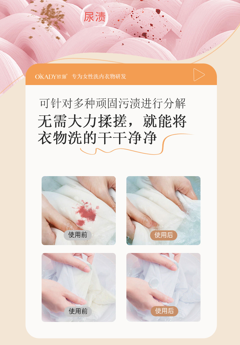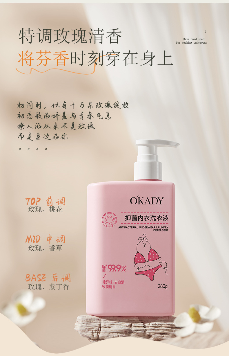 72小时之内发货!【OKADY欧佩内衣裤洗衣液】一瓶呵护内在健康 专为洗内衣物研发 去污去渍 温和配方不伤手 草本除异味 馨香不残留 蛋白酶+椰子油成分 清洁的同时还能不伤衣物