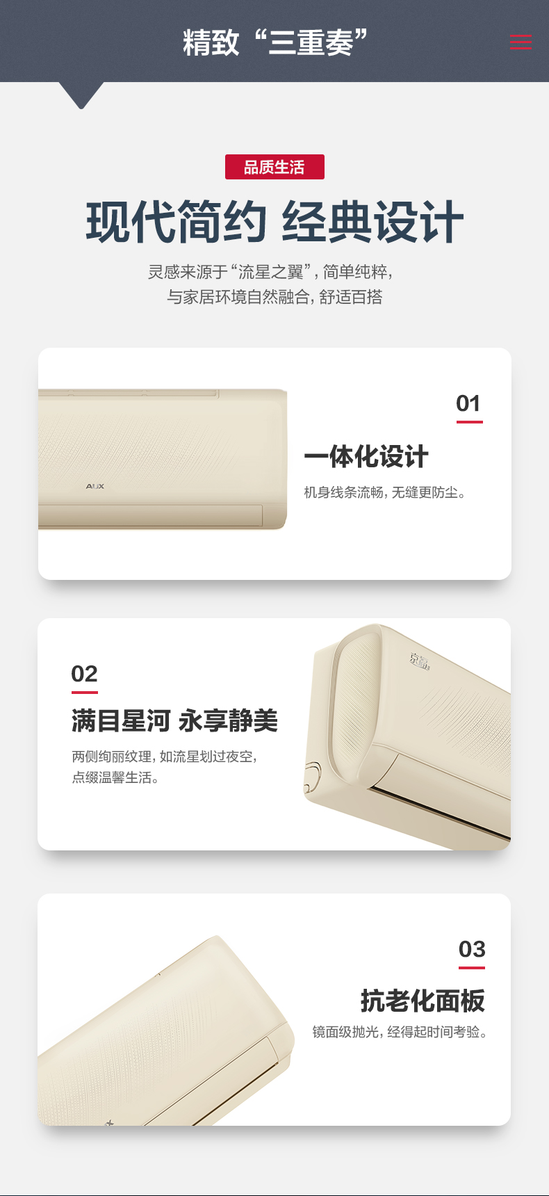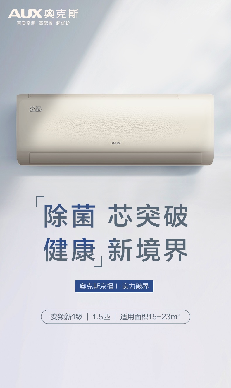 奥克斯(AUX) 京福Ⅱ 1.5匹(金) 新一级能效 变频冷暖 第四代水洗自清洁 30秒速冷 高温除菌 独立除湿 机身一体化 KFR-35GW/BpR3AQG28(B1))