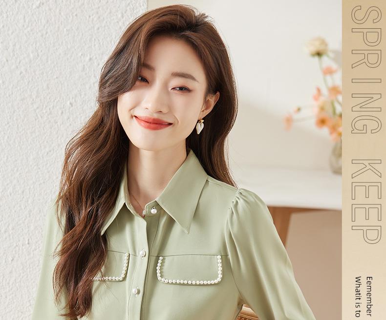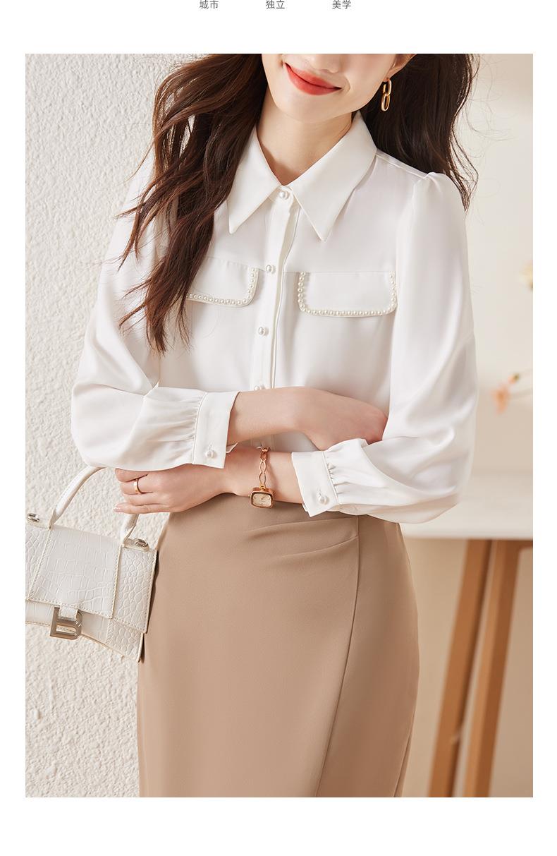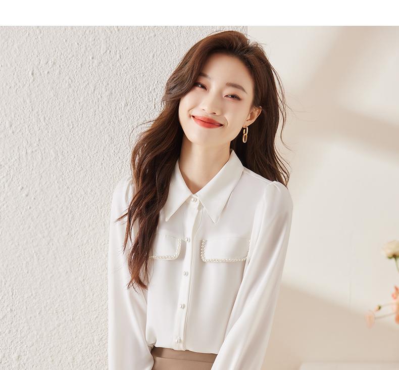 娜璐多 小香风钉珠衬衫女2023秋季新款气质百搭内搭长袖上衣通勤约会衬衣