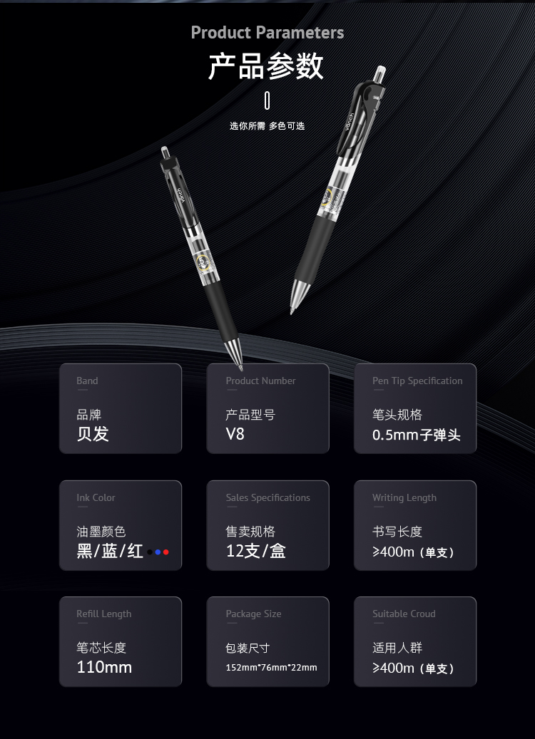 国家标准的书写长度才200m,v8远高于市面上的普通大容量中性笔!