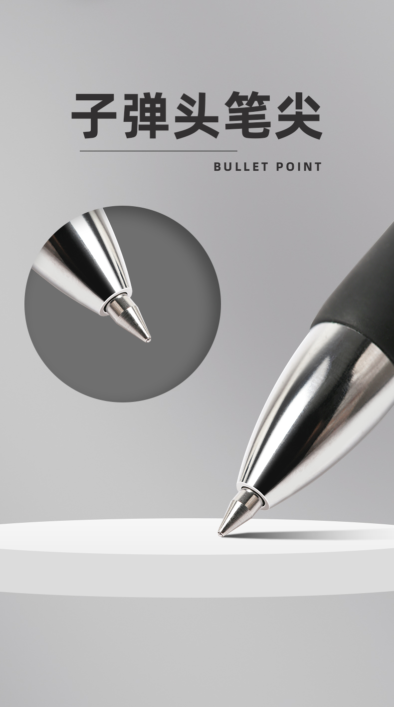 我们的v8中性笔,采用精工不锈钢子弹头设计!