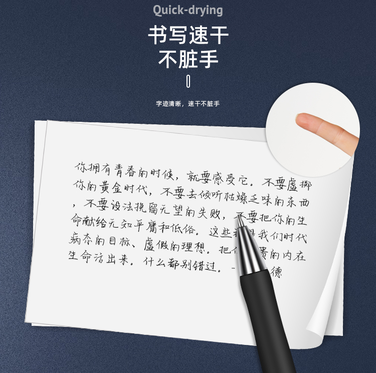 3、速干笔墨,写后秒干,好用不脏手,卷面干净易得分;