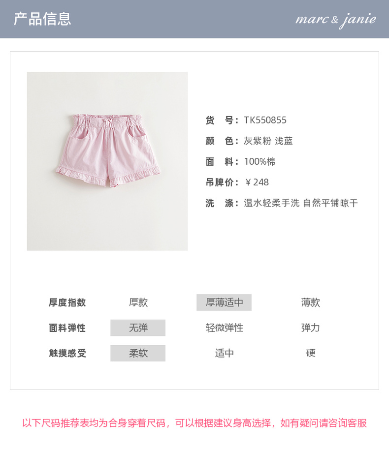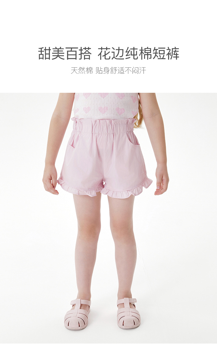 马克珍妮女童舒适百搭花边短裤宝宝裤子纯棉2025年夏装新款550855