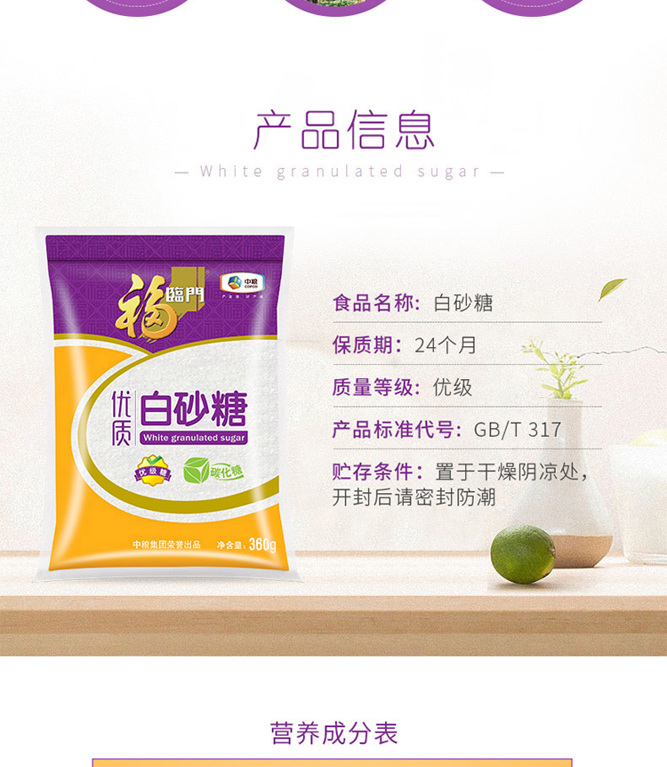 福临门优质白砂糖 360g*2