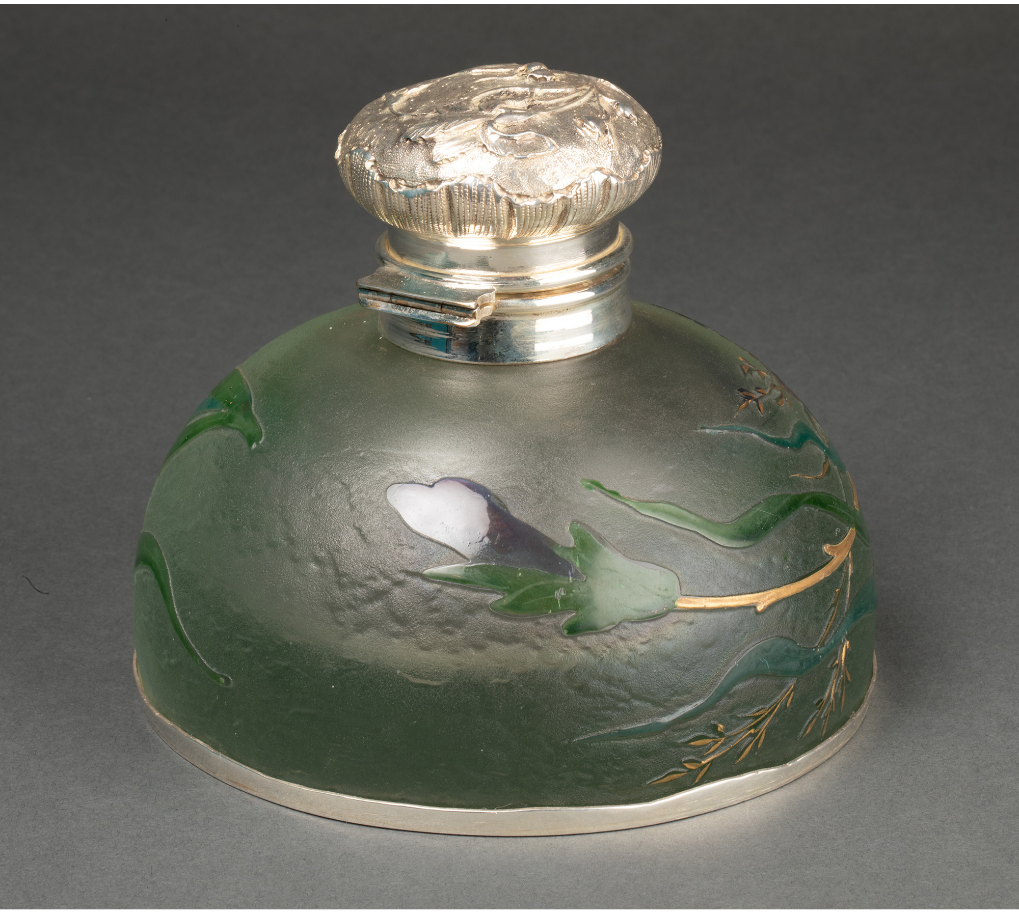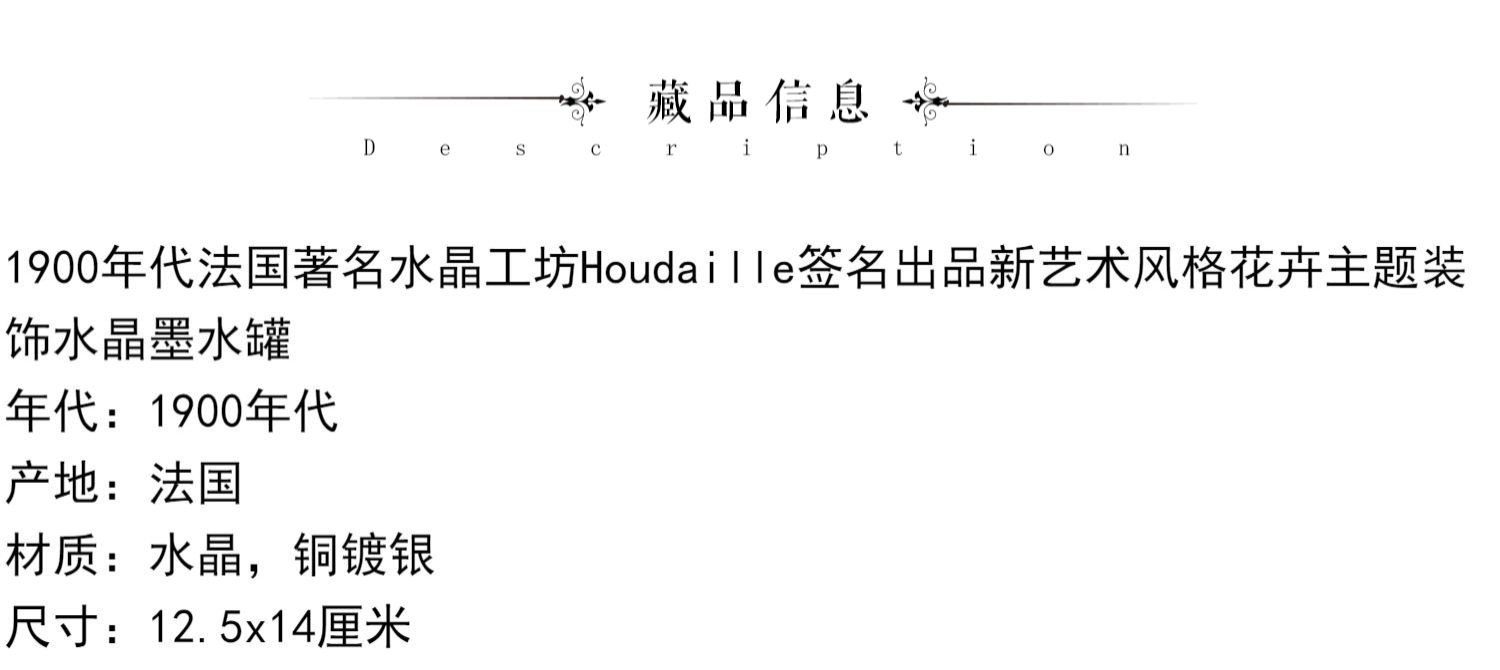 独角鹿西洋古董法国Houdaille工坊新艺术风花卉水晶墨水罐墨水瓶