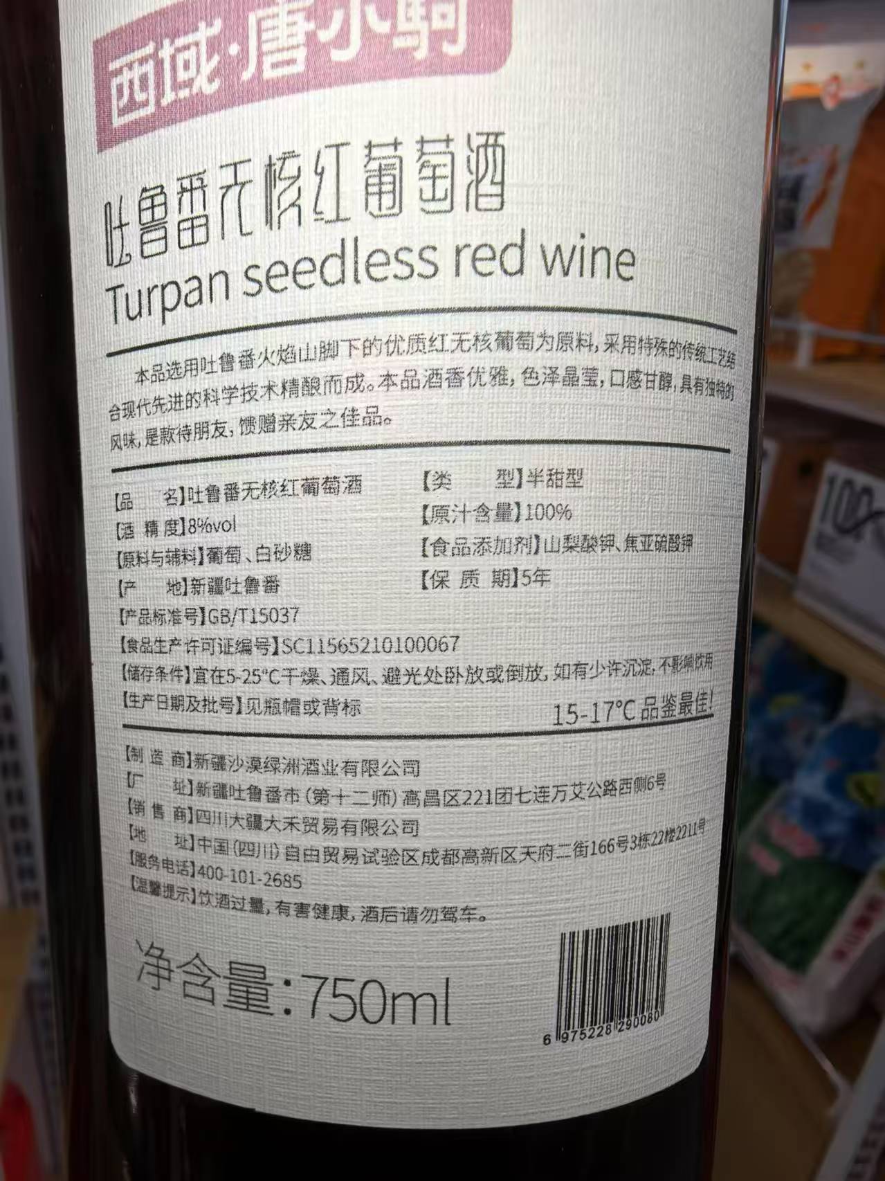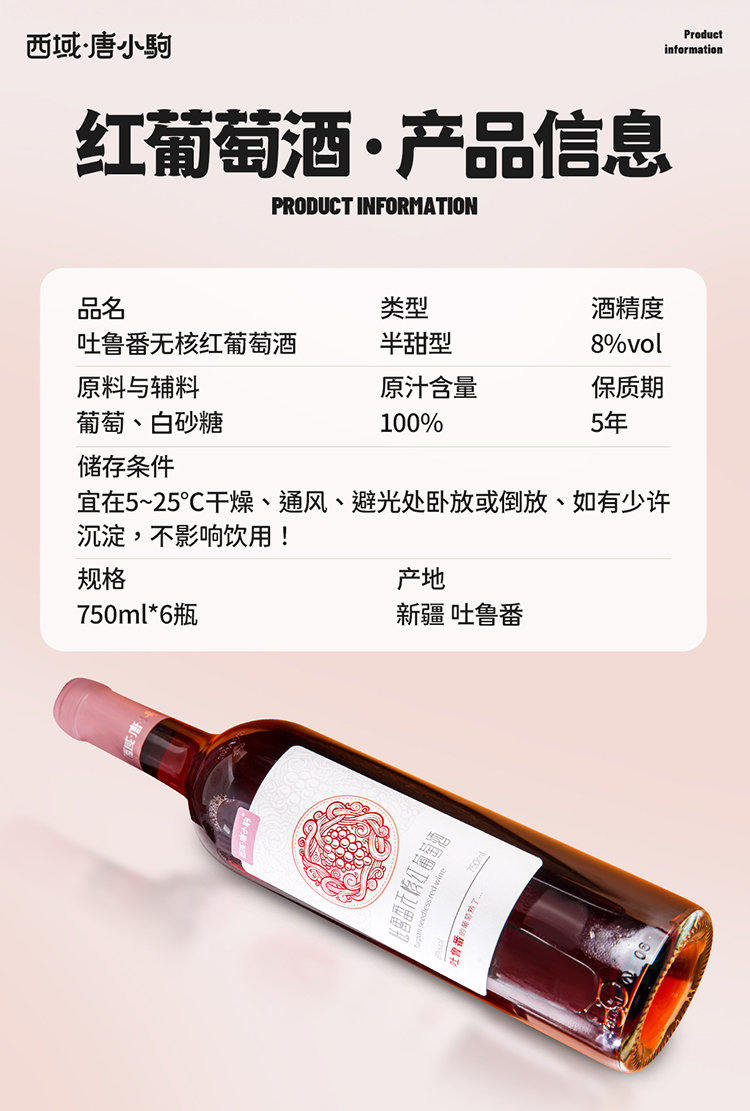 【产品名称】吐鲁番无核红葡萄酒