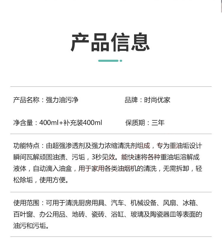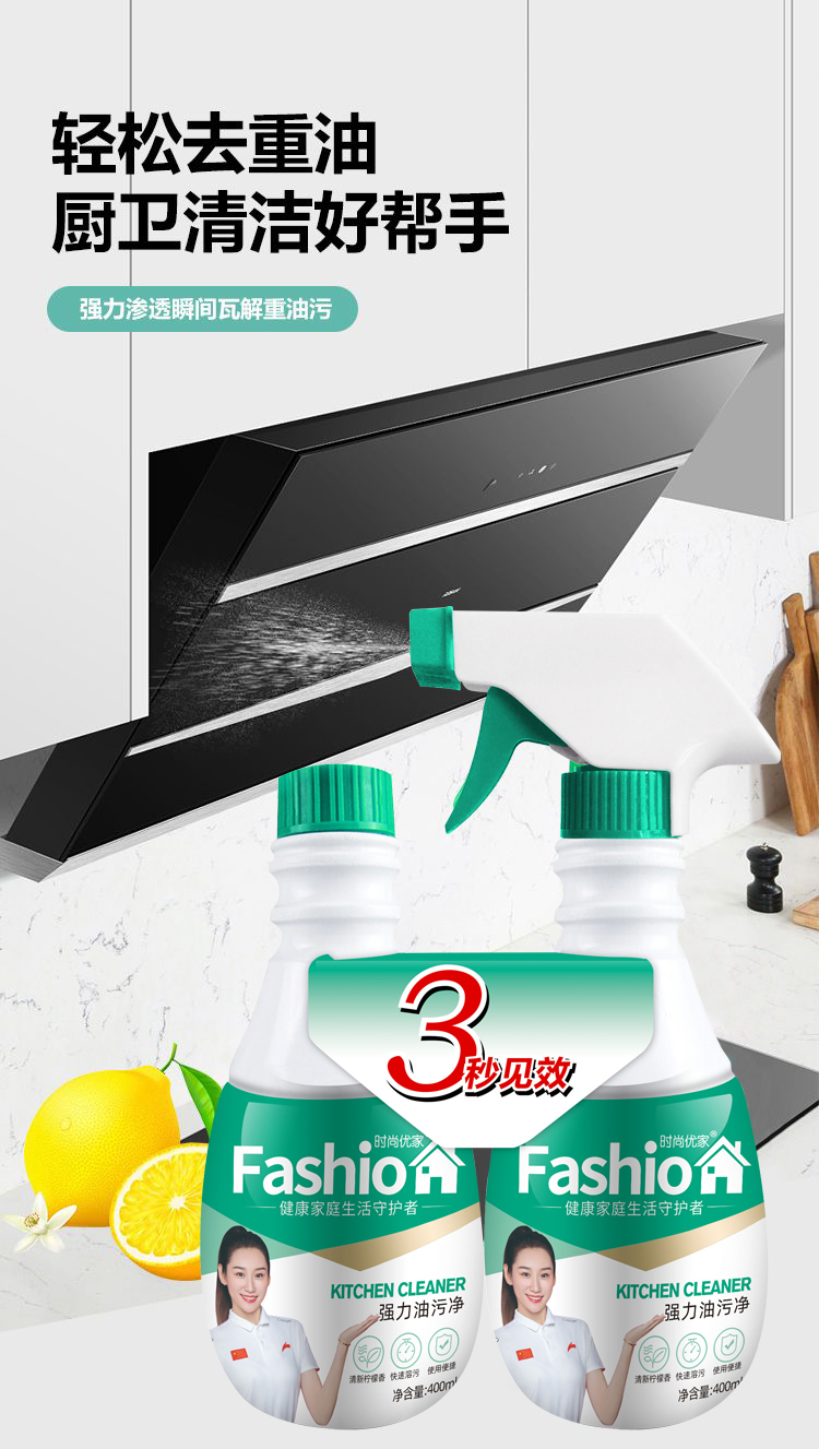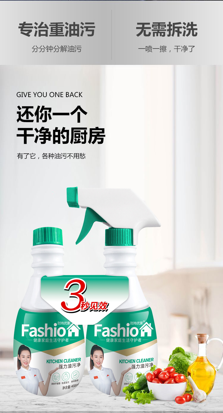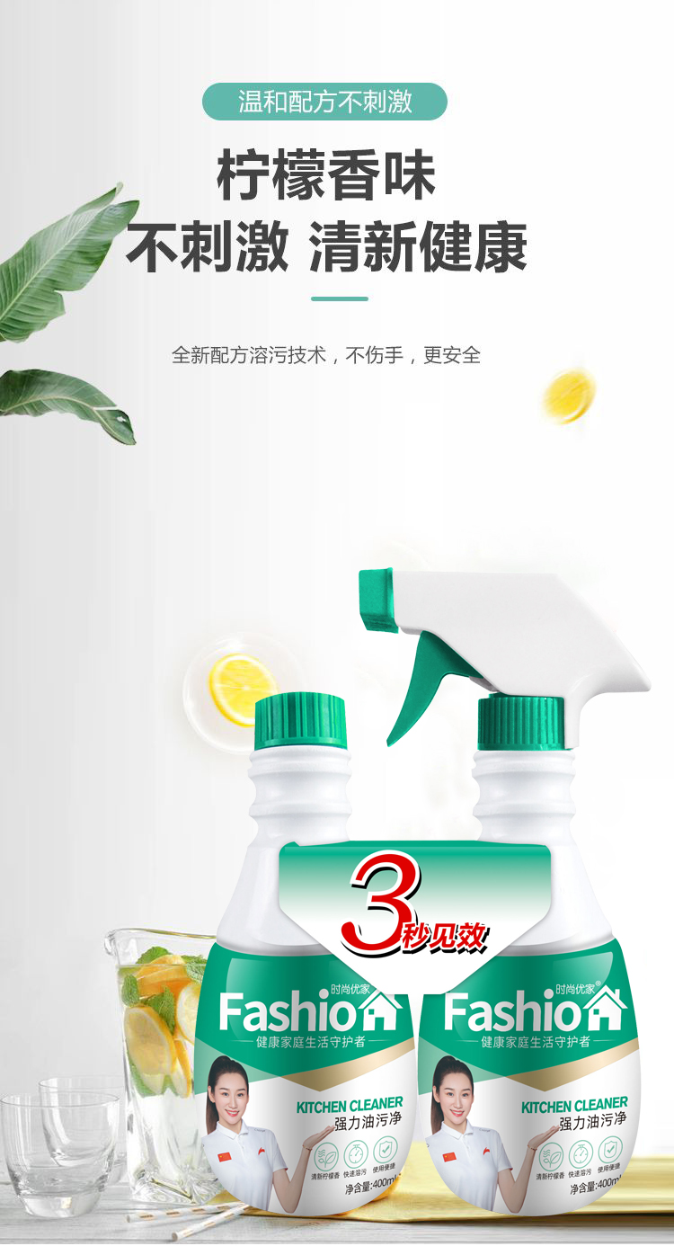 时尚优家清香强力厨房油污净400ml*2
