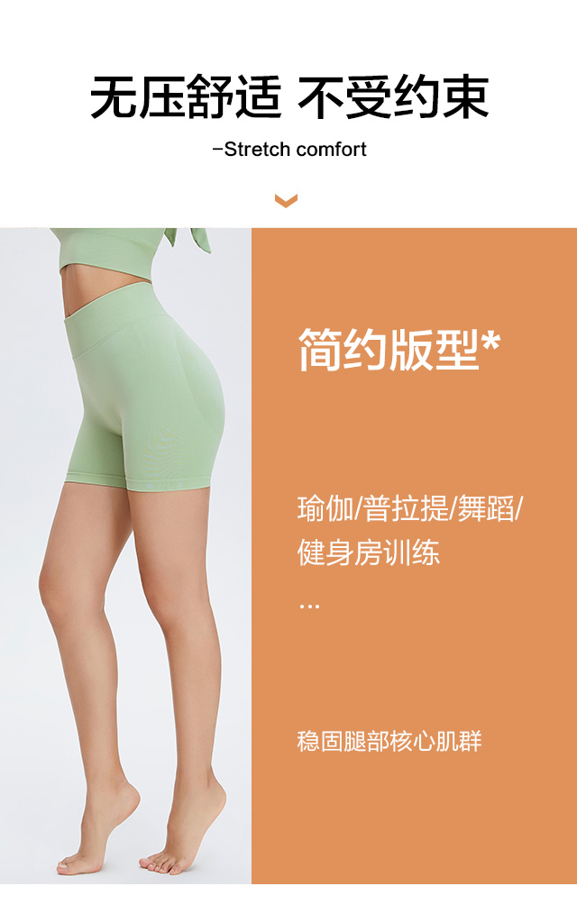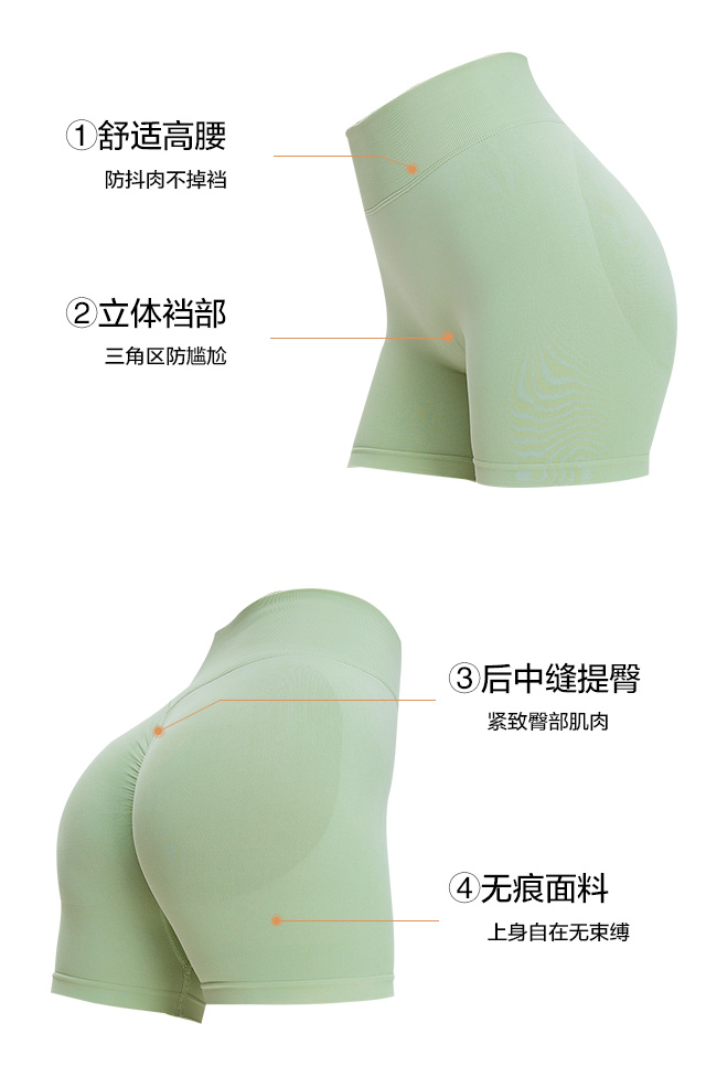 无痕,提臀 一片式剪裁,高弹不卷边,速干三分瑜伽短裤