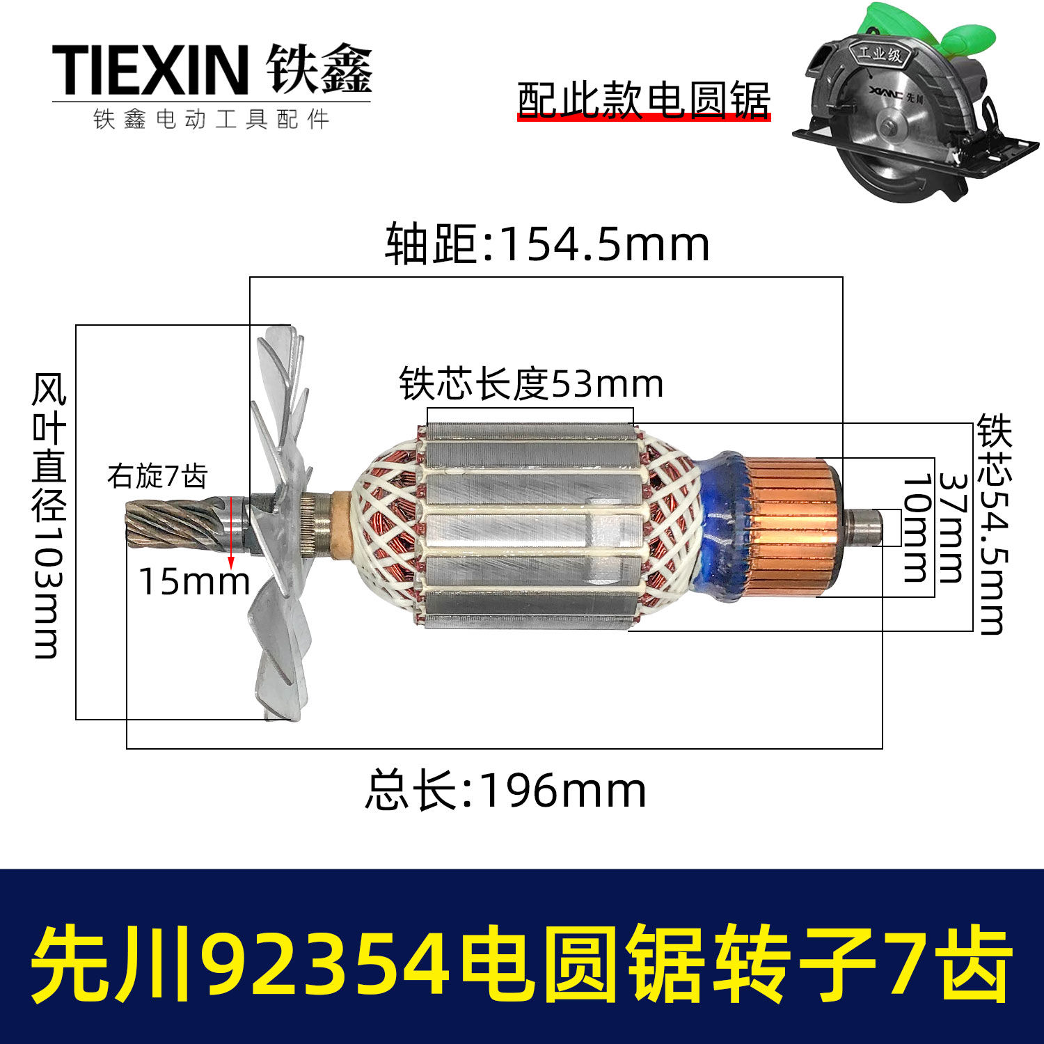 【货号07617】配先川12寸电圆锯转子7齿巨蜥神金蝉12寸电圆锯转子先川92354/1255电锯电机