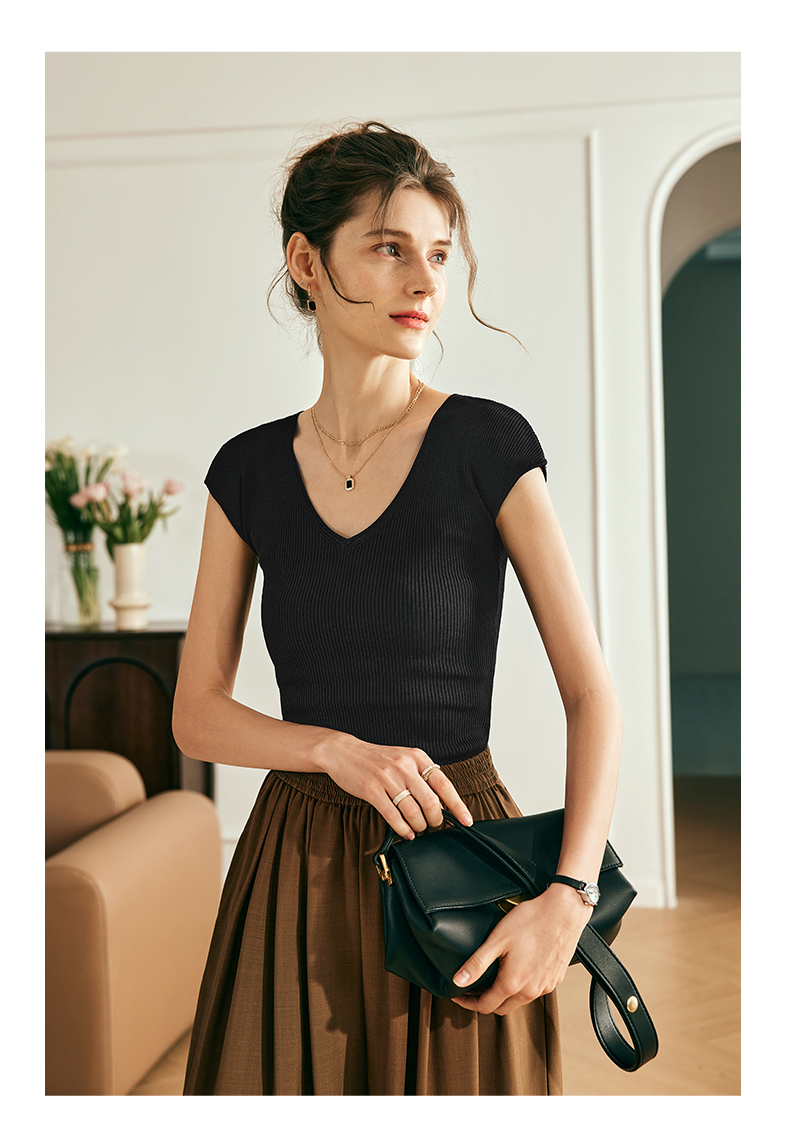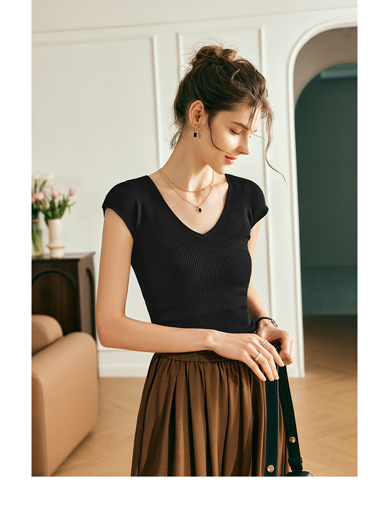 OLrain欧芮儿法式背心针织衫女夏季2023新款气质修身显瘦v领上衣