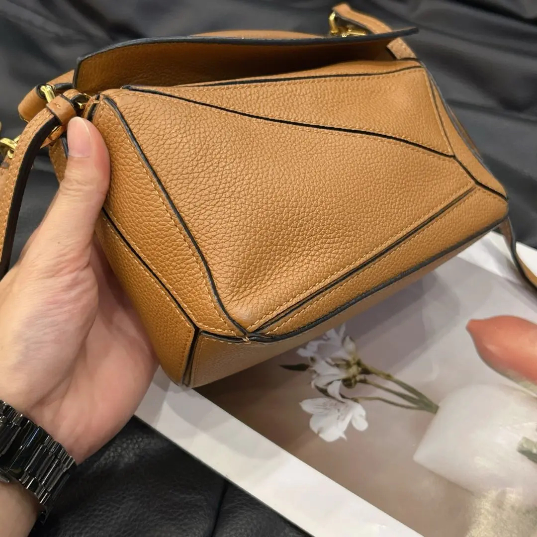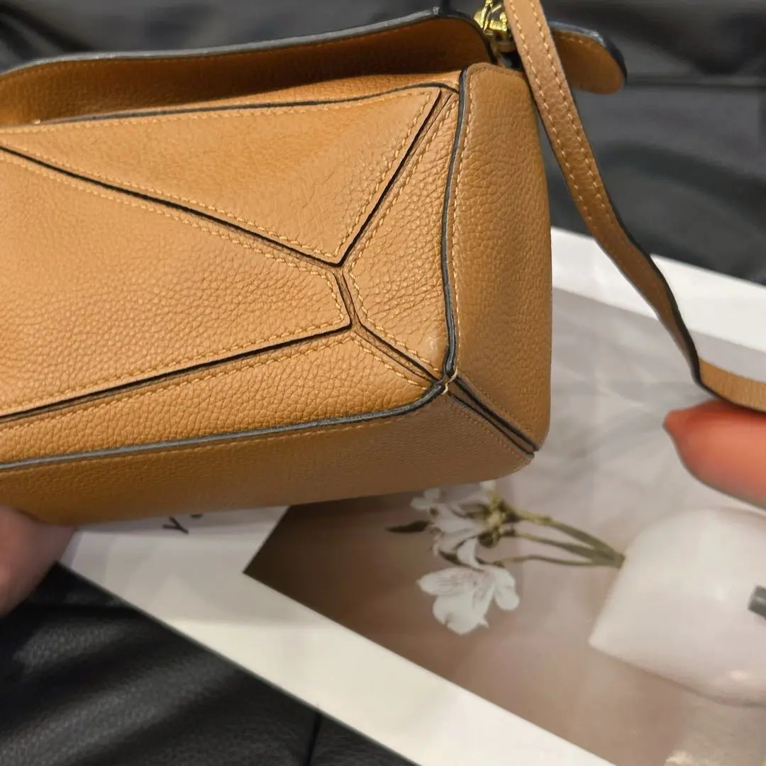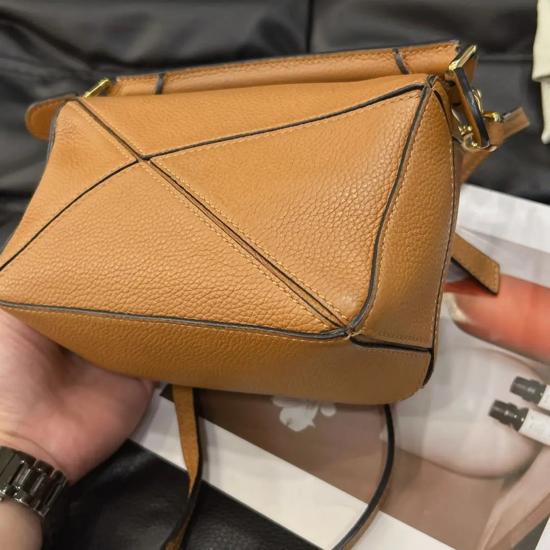 【商品详情】正品二手 罗意威 mini 焦糖色 牛皮 puzzle 几何包👜98新 18x11 配件:肩带 防尘袋。精致小包
