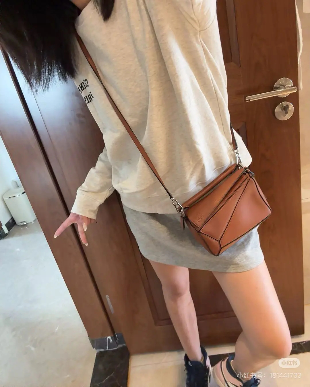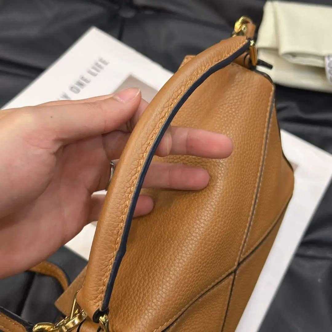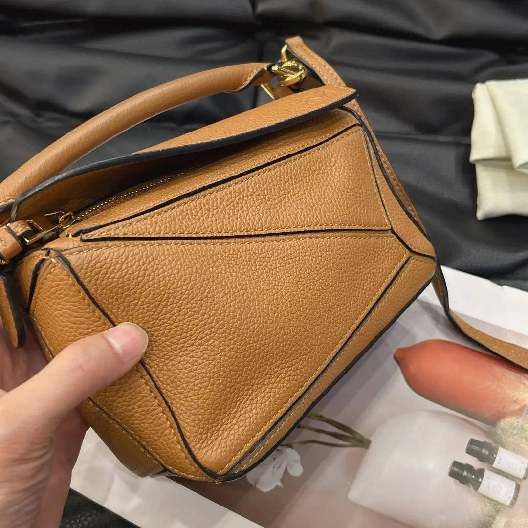 【商品详情】正品二手 罗意威 mini 焦糖色 牛皮 puzzle 几何包👜98新 18x11 配件:肩带 防尘袋。精致小包