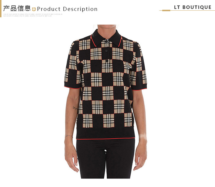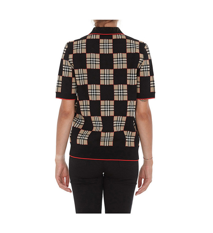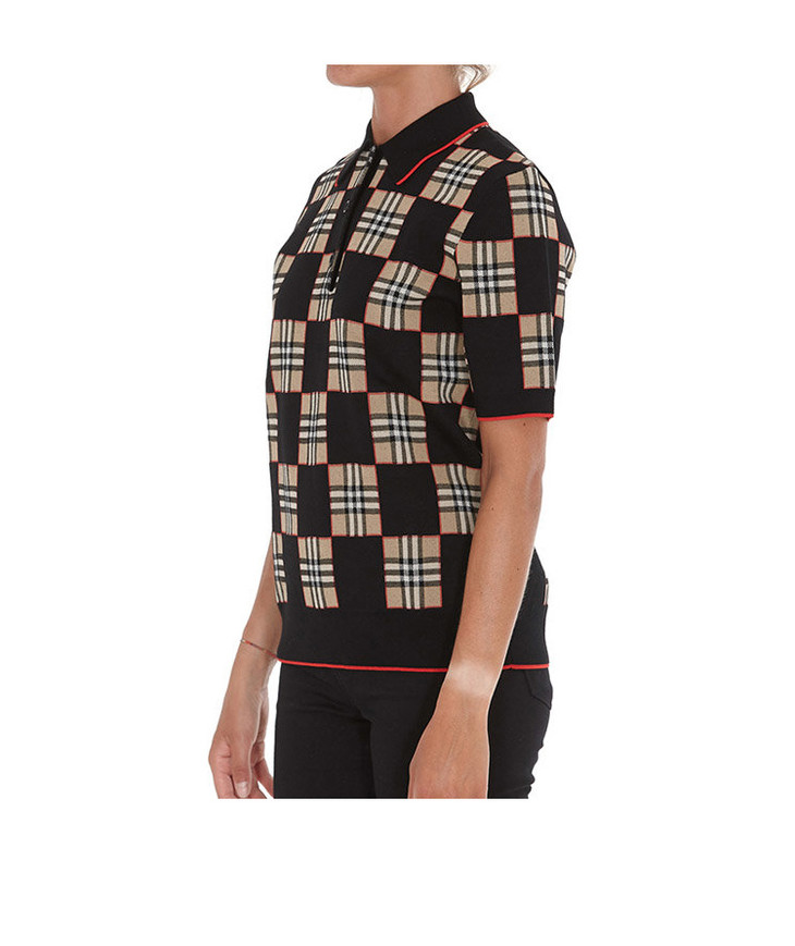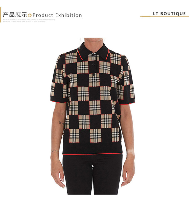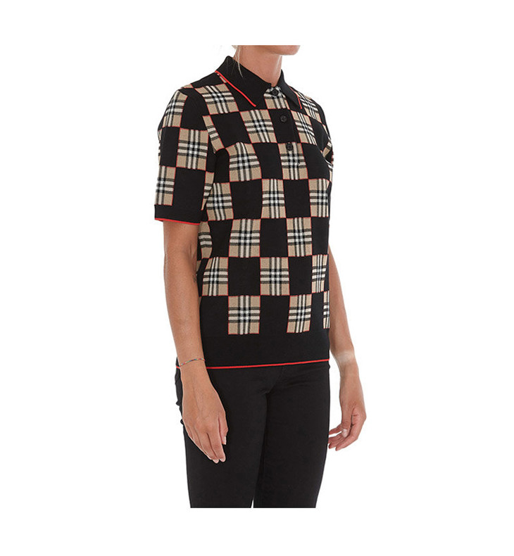 BURBERRY 巴宝莉 女士棋盘格纹美利奴羊毛混纺提花短袖针织 Polo 衫 混色 8030053 A7556