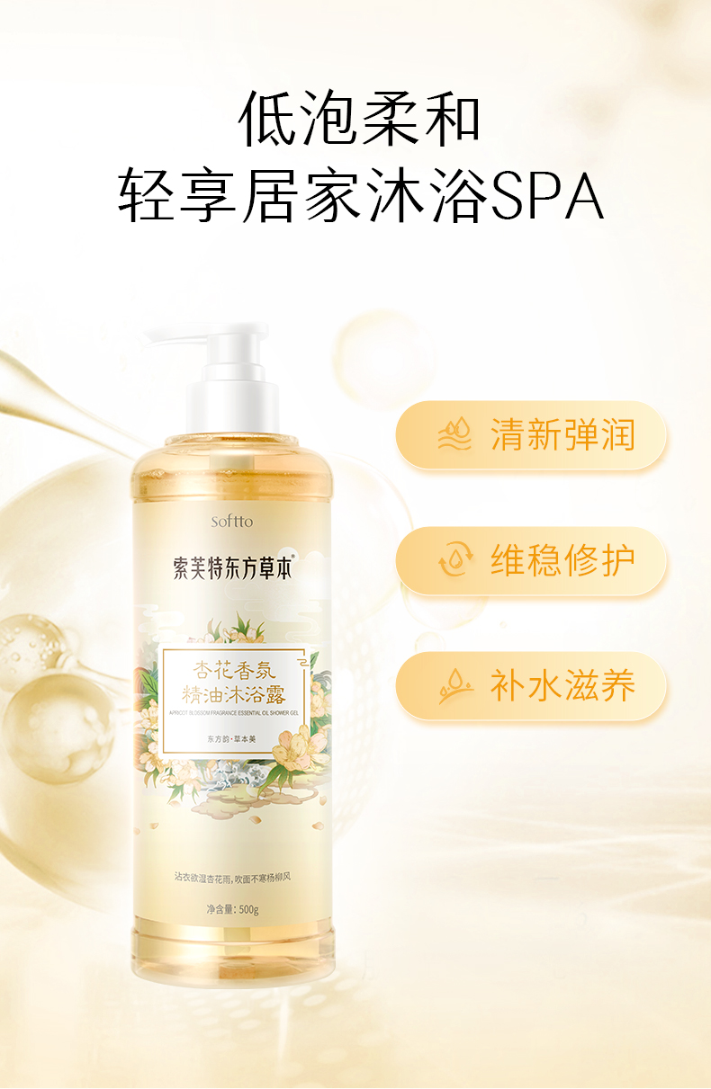 索芙特东方草本杏花精油香氛沐浴露500g 商品缩略图0 索芙特东方草本杏花精油香氛沐浴露500g 商品缩略图1 索芙特东方草本杏花精油香氛沐浴露500g 商品缩略图2 索芙特东方草本杏花精油香氛沐浴露500g 商品缩略图3