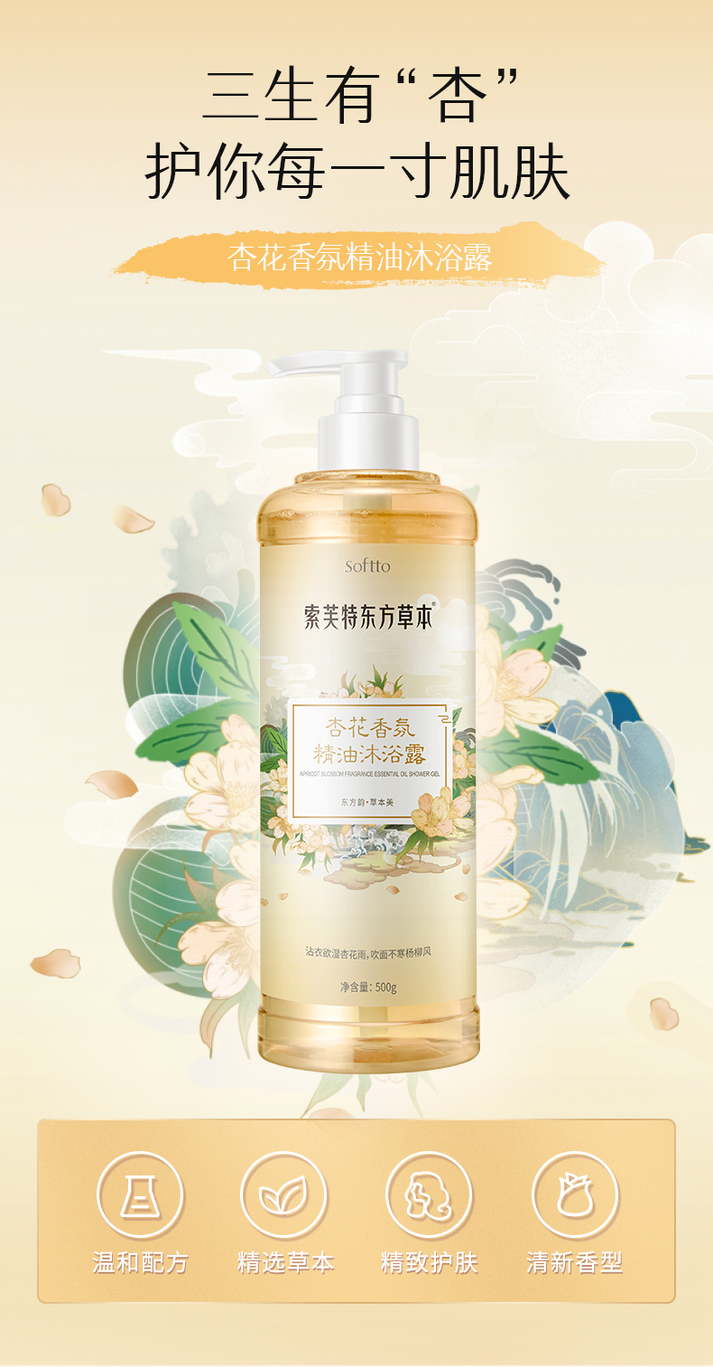 索芙特东方草本杏花精油香氛沐浴露500g 商品图0