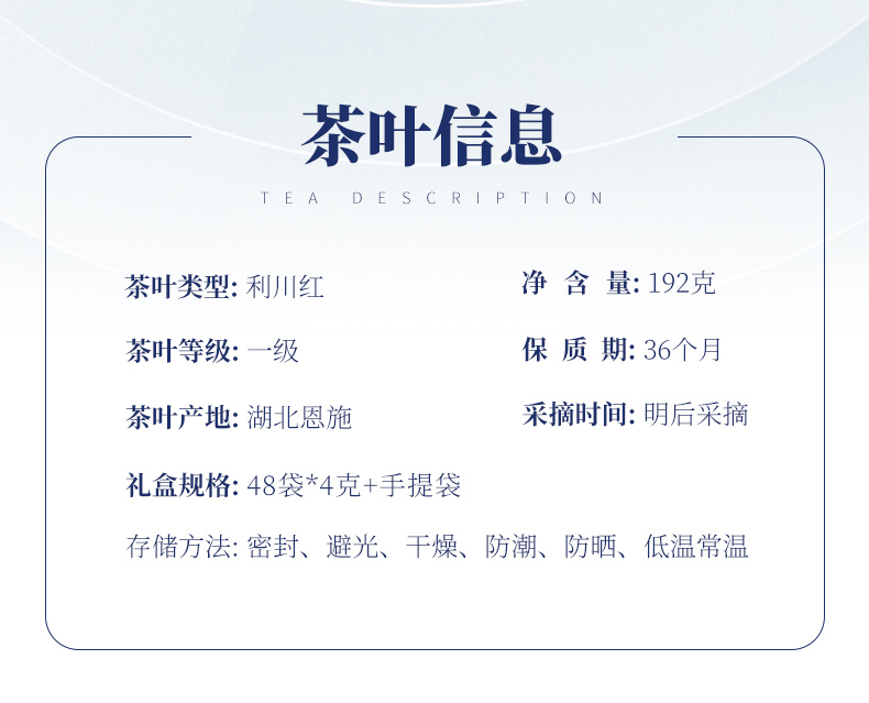 蓝焙·硒妃利川红·楚艺192克(48袋*4克)/盒一级