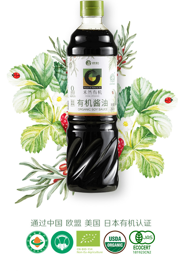 如是严选|禾然有机酱油500ml|900ml|160ml厨房调味咸鲜适口 醇酿原香有机黄豆酱油酿造酱油国际有机认证