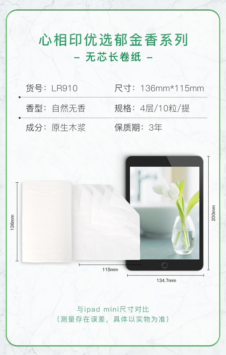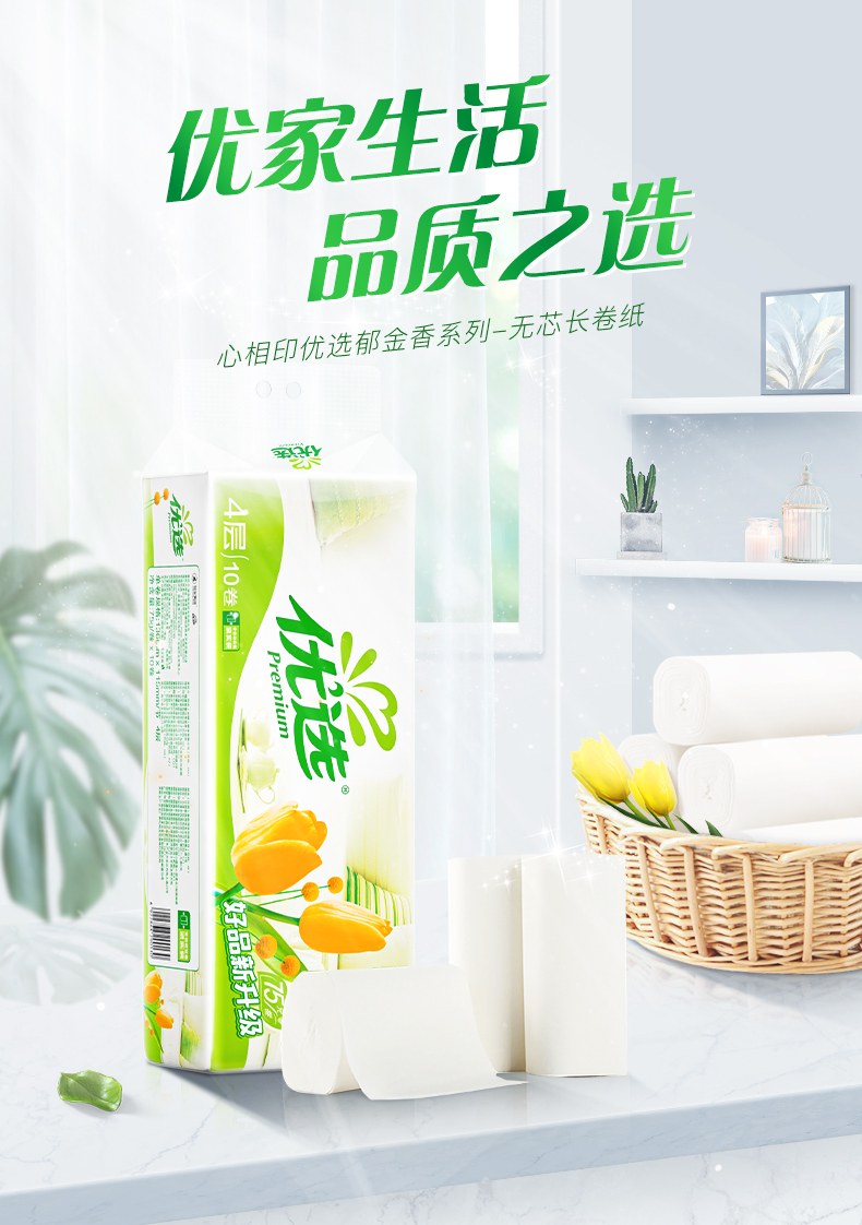 LR910(提装)优选郁金香系列75克10粒装四层无芯卫生纸(橙花)单提