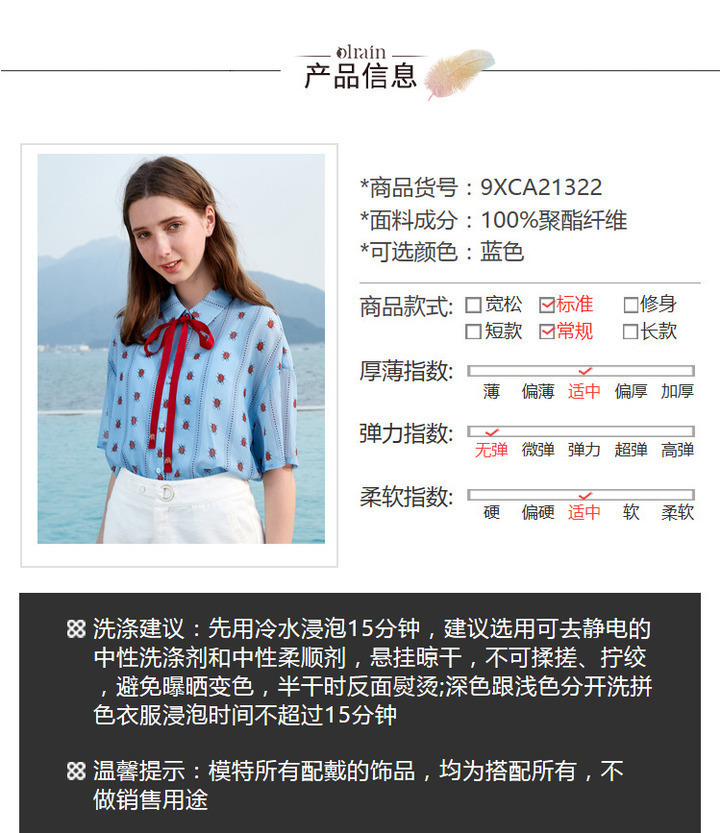 - “精致”是欧芮儿olrain品牌文化的核心,欧芮儿认为,精致的女人,不但要外在动人,更要内在迷人,内外兼修,有魅力、有气质、有内涵,自信而不自傲,优雅而不矫揉,自有万种风情而不轻浮,更不故作矜持。