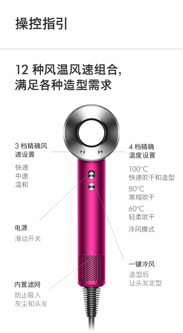 【赠品勿拍】 戴森 Dyson吹风机 Supersonic 电吹风 HD03紫红镍色臻选套
