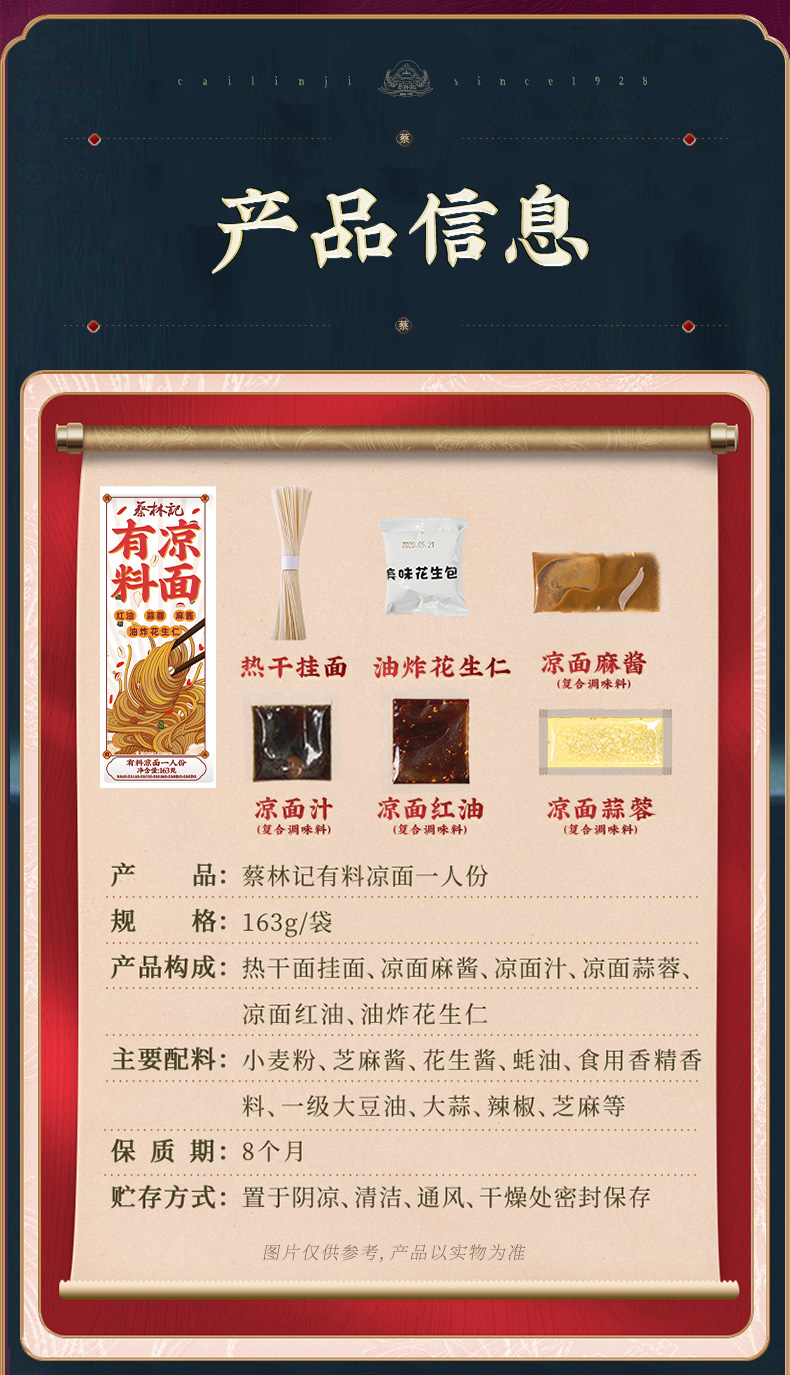 【上新秒杀】蔡林记有料凉面163g*5袋 独立袋装酱料齐全(送红油凉面1袋)