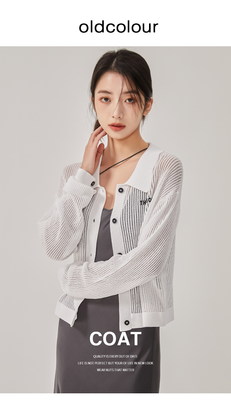 oldcolour2023春季新款白色百搭镂空气质直筒短款外套女O13053337