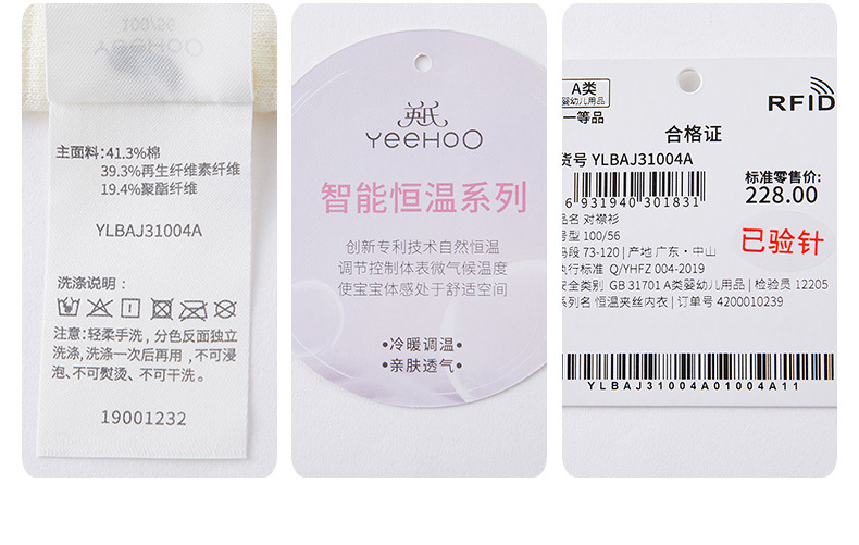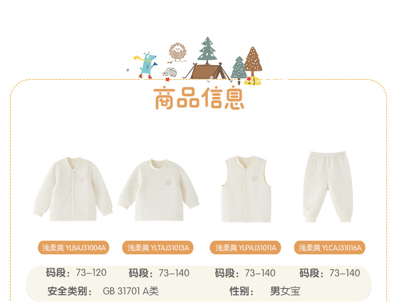 英氏-内衣类(秋)E1恒温对襟浅柔黄100CM