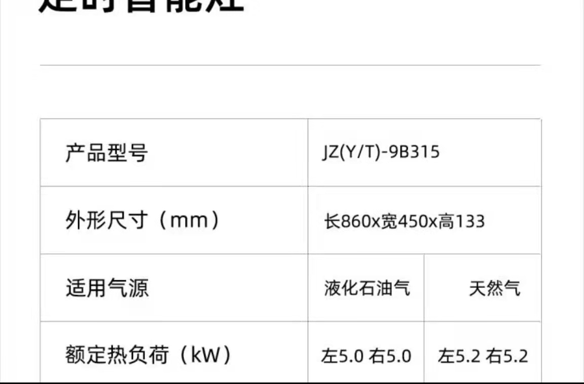 老板(Robam)5.2KW大火力燃气灶 71%热效率 快速定时 可调节安装底座 可拆卸炉头JZT-9B315