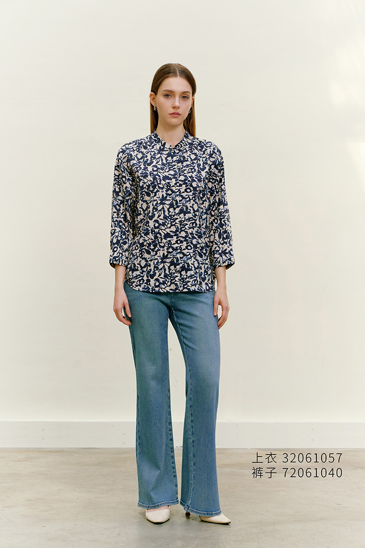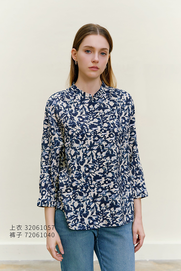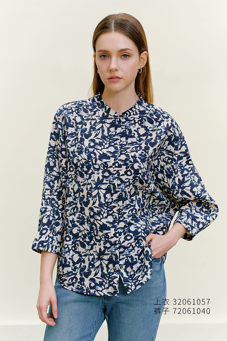 【桑蚕丝碎花衬衫】26年春夏新品女士七分袖真丝薄款不对称上衣