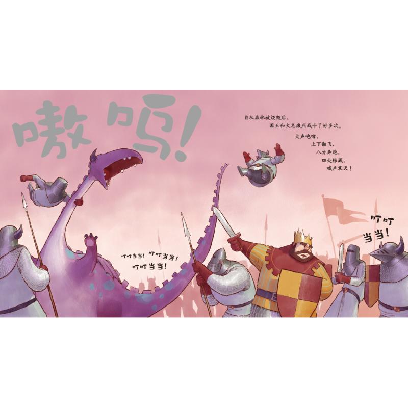 《国王、火龙与男孩》从前,有一位国王,他拥有高大的城堡、广袤的土地,还有许多勇敢的骑士。后来,一头喷火巨龙摧毁了王国里的森林。为了保护自己的领土,人与龙之间爆发了旷日持久的战争。直到有一天,一个听不见声音的男孩跑到了他们中间……