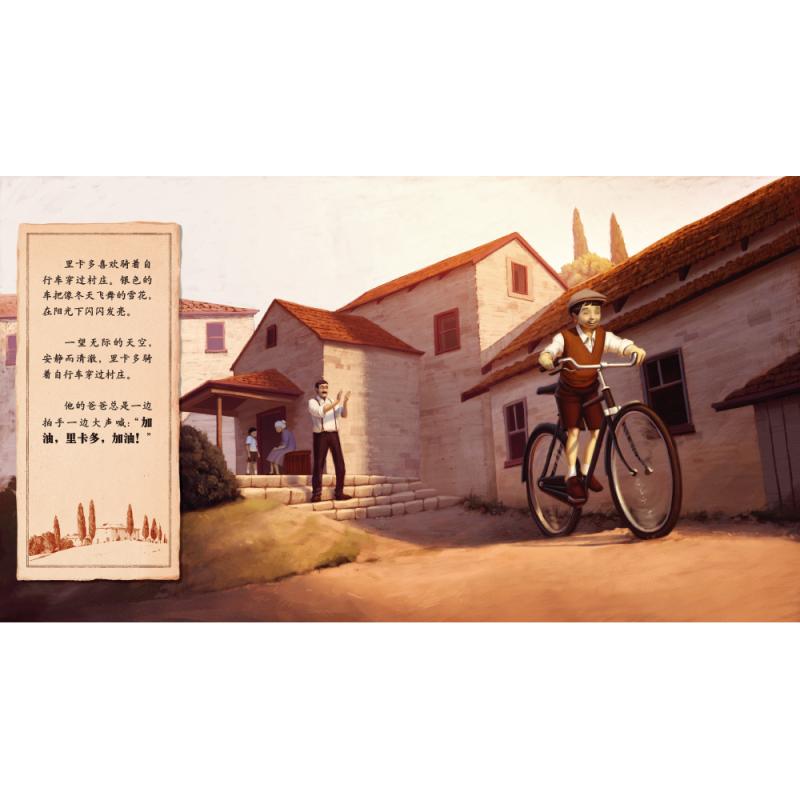 《骑自行车的男孩》里卡多最喜欢骑着他的自行车在村子里穿行,头顶上那广阔的天空,安静又明朗。每当他骑着车子,爸爸总会一边鼓掌一边高喊:“加油,里卡多,加油!”直到有一天,这个世界变得不一样了。里卡多和爸爸把自行车拆成了零件,他再也不能骑自行车了……