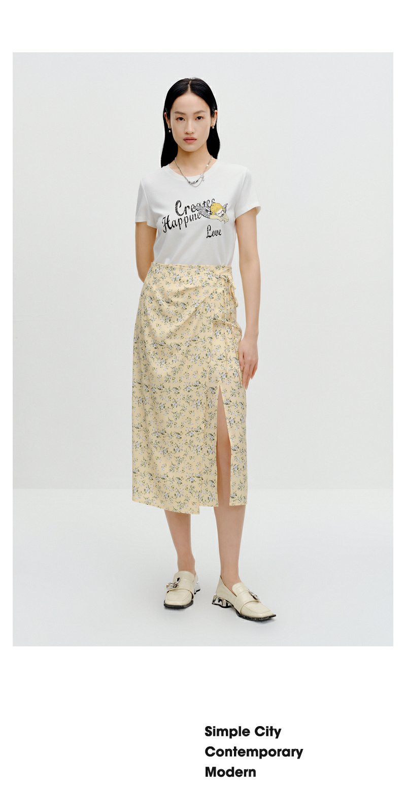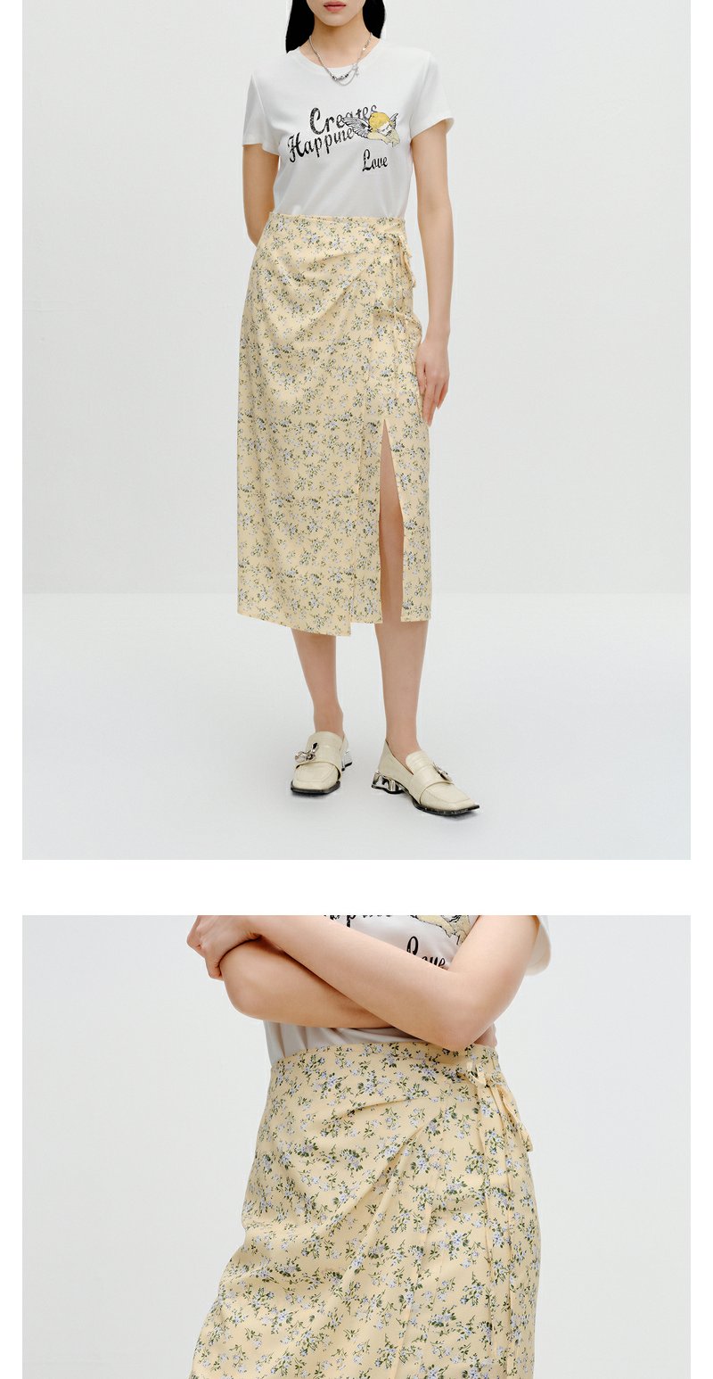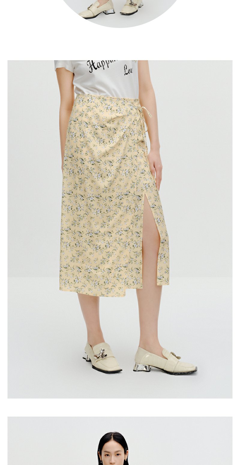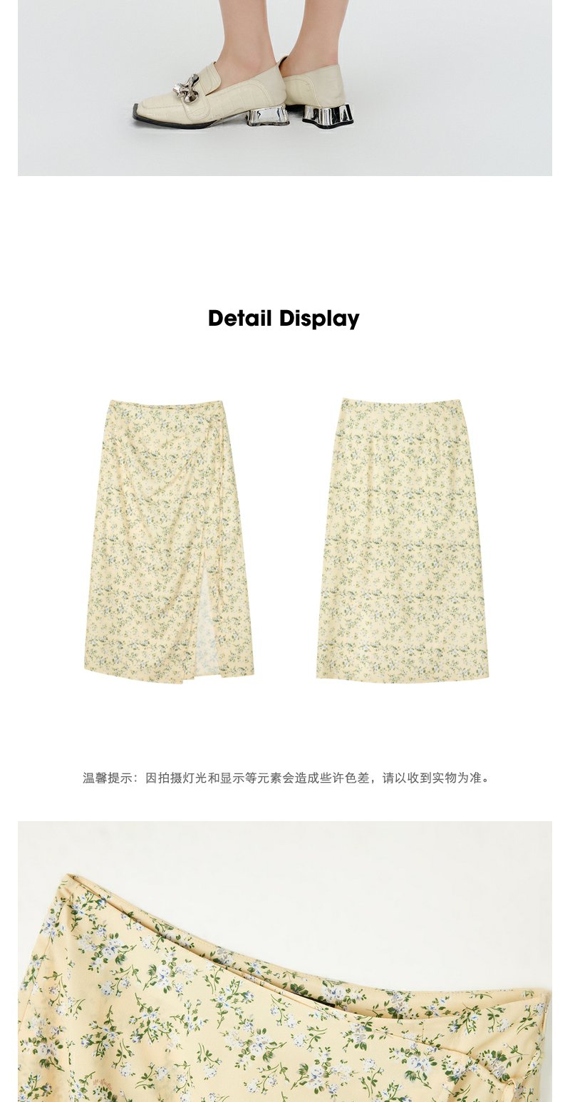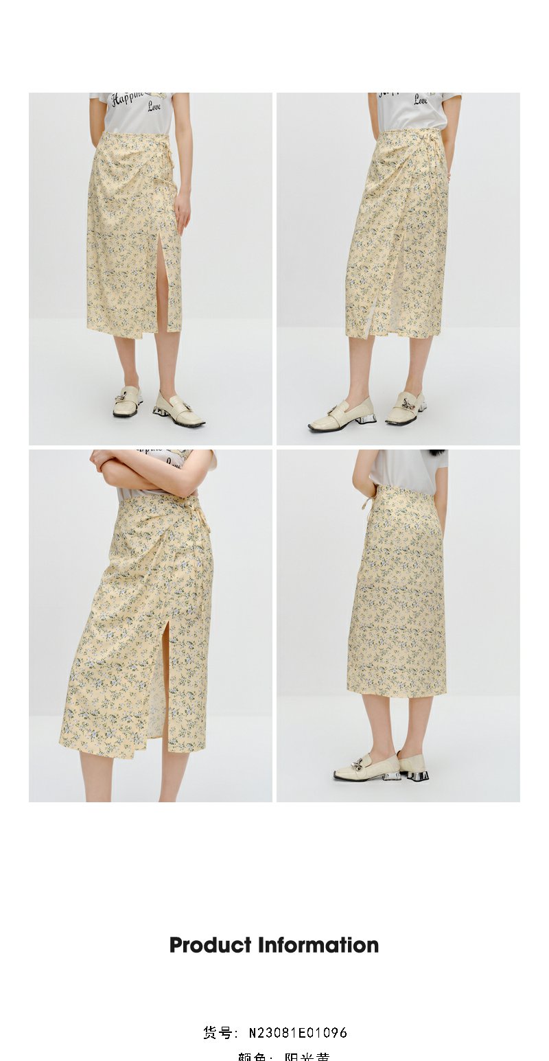 NEELLY纳俪商场同款碎花半身裙女早秋新款法式垂感开叉显瘦中长裙N23081E01096