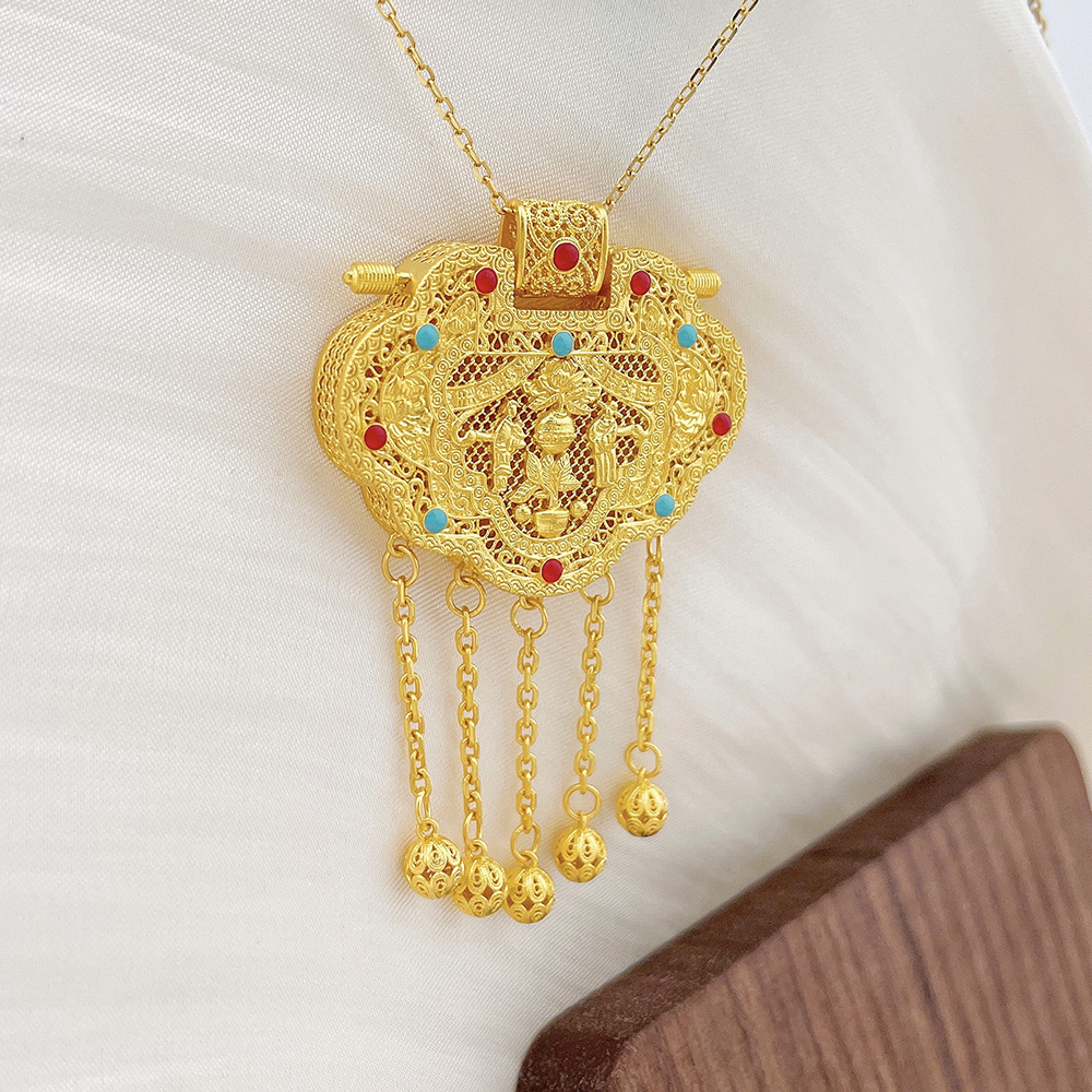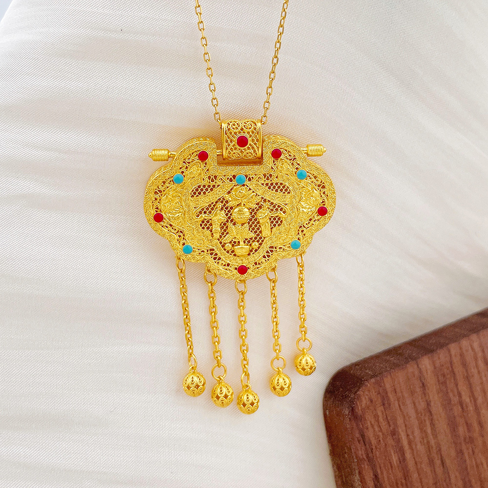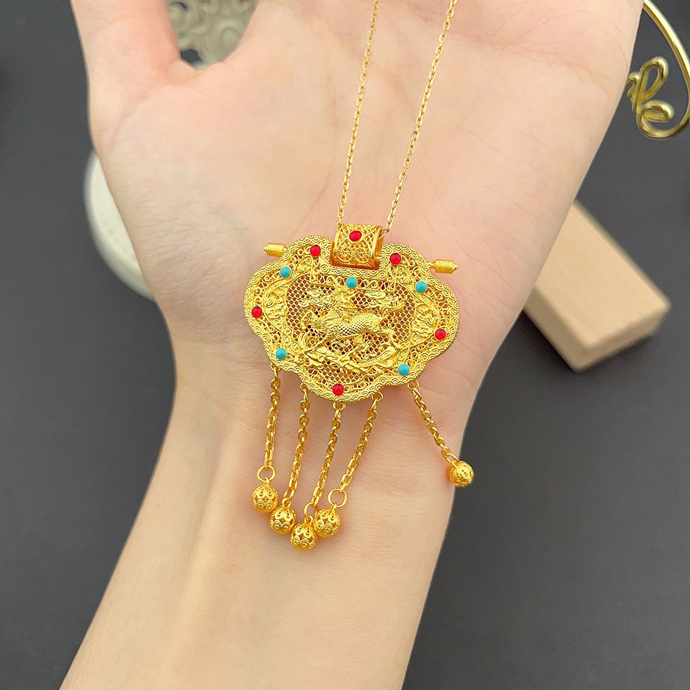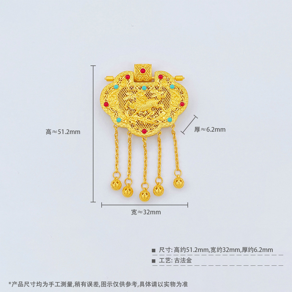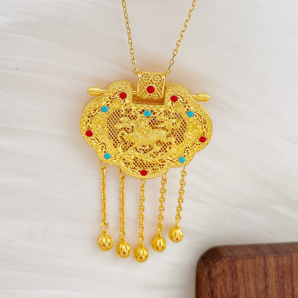 【限时克减150元】足金999 #天子门生 #婚庆 古法空心镂空珐琅天子门生锁包婚嫁吊坠铃铛流苏花丝如意锁包龙凤呈祥锁包吊坠(不含链)(YGFDZ00386)(预售产品下单后不退款不退货不换货不补差价