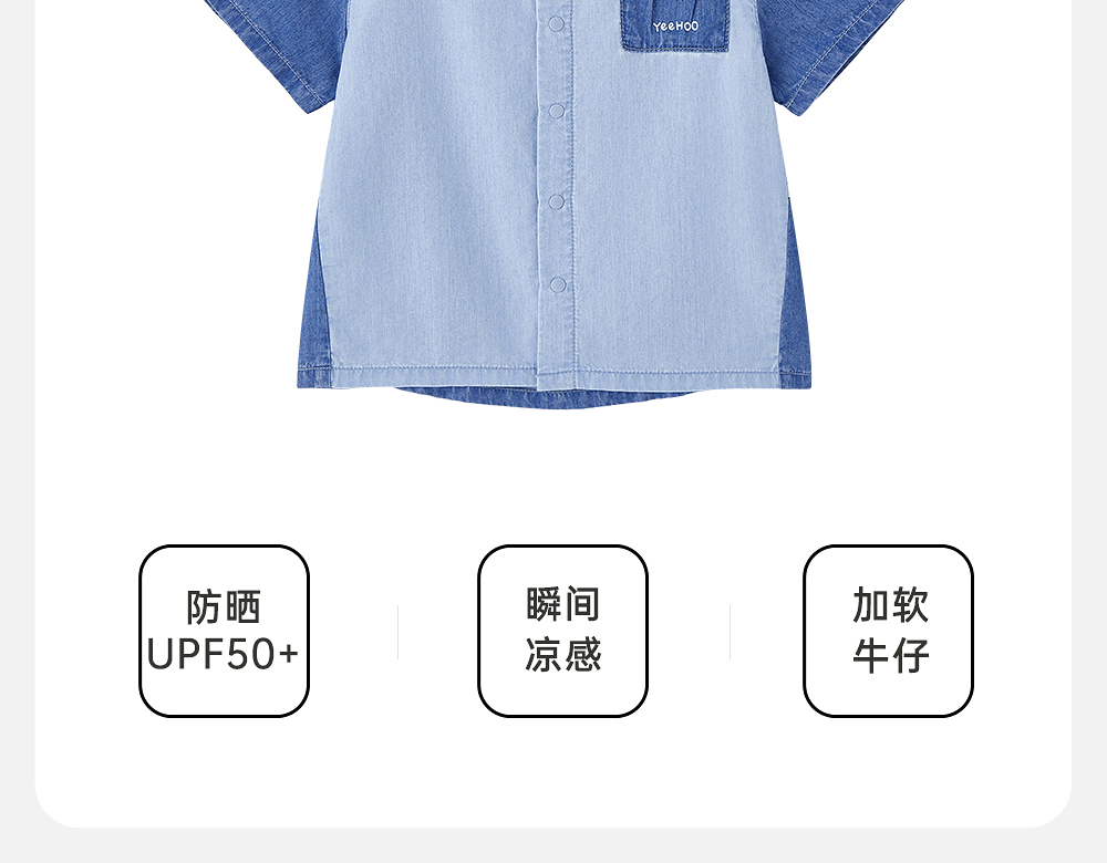 英氏儿童衬衫夏季短袖透气凉感防晒男童上衣2025新款YRCCJ2R057A
