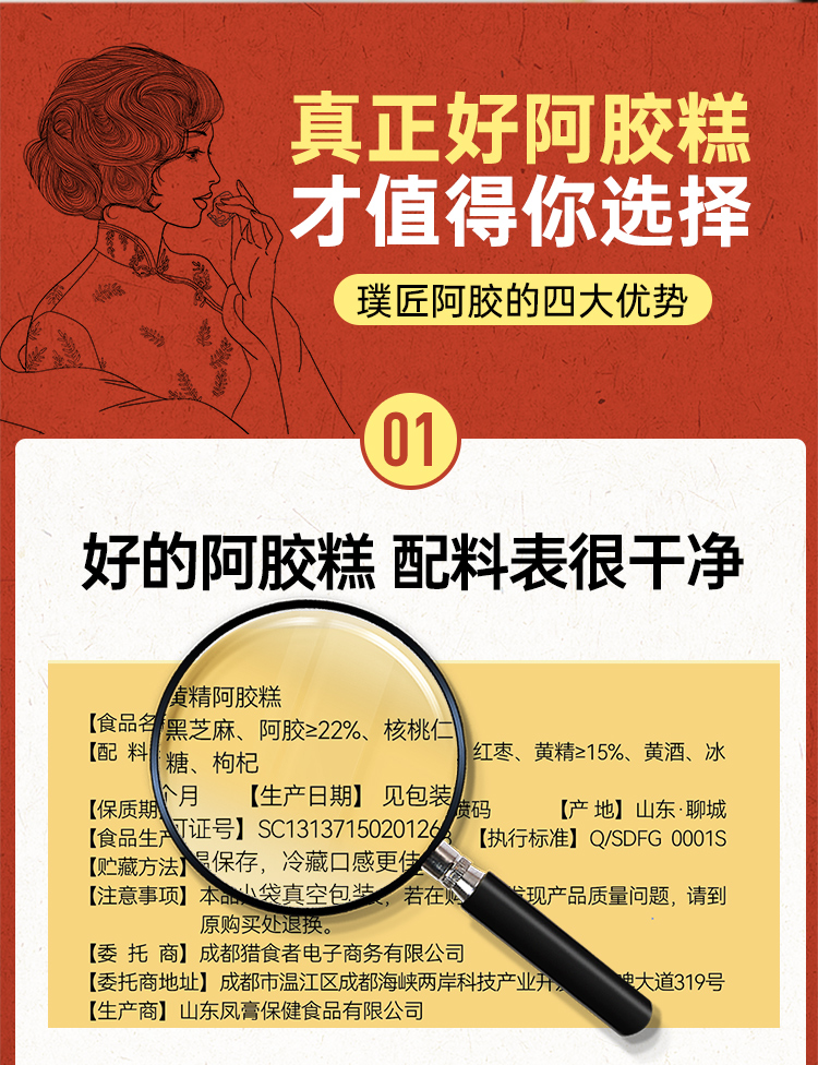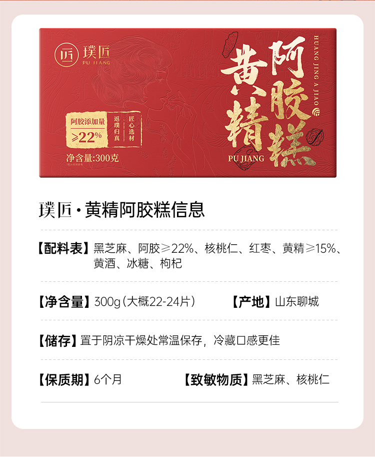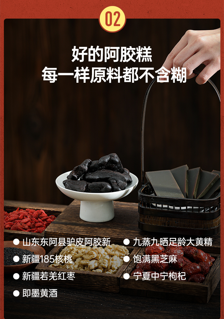 璞匠黄精阿胶糕即食黑芝麻阿胶核桃仁红枣黄精黄酒冰糖枸杞