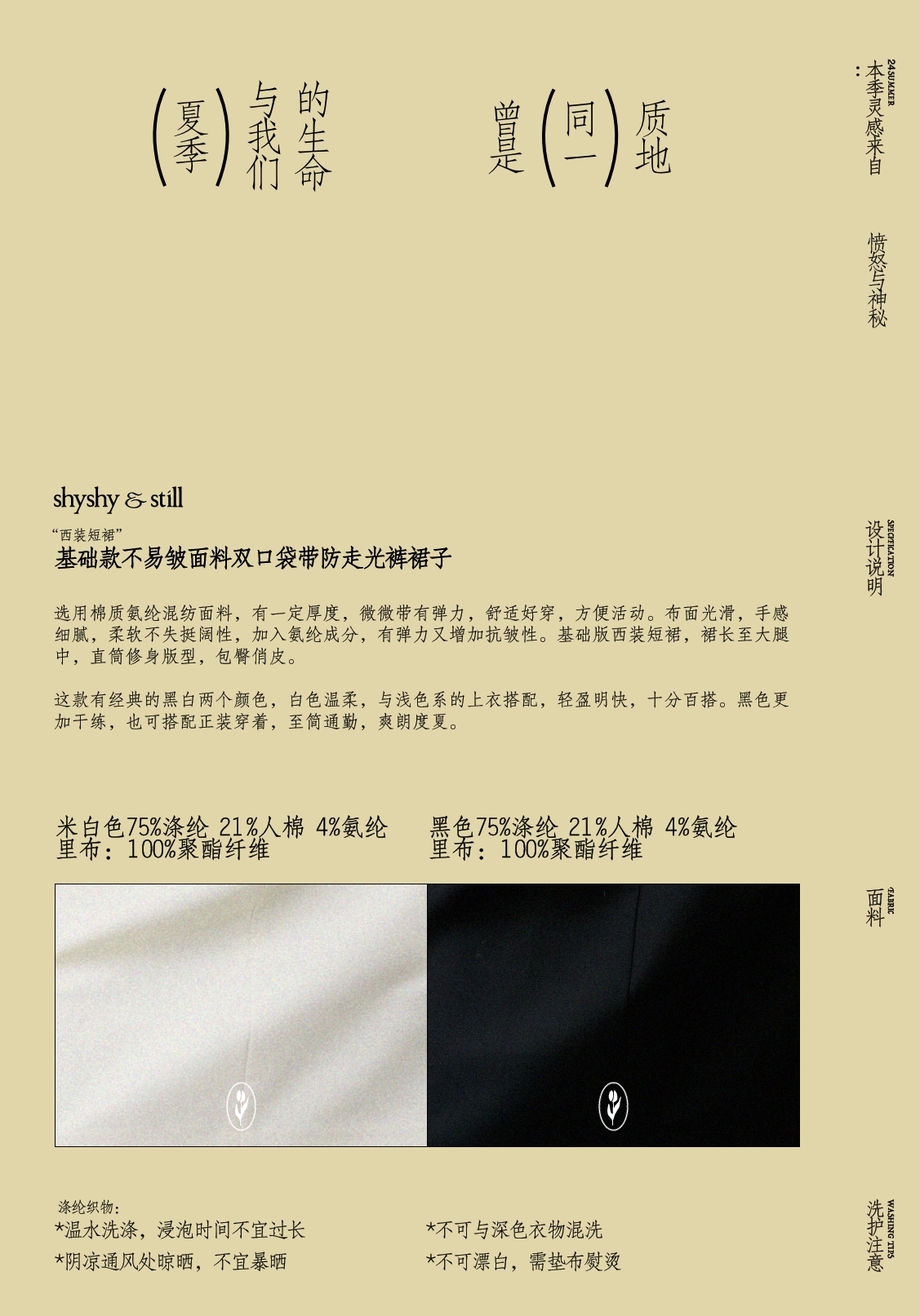 shyshystill/shy202404022/不易皱面料双口袋带防走光裤裙