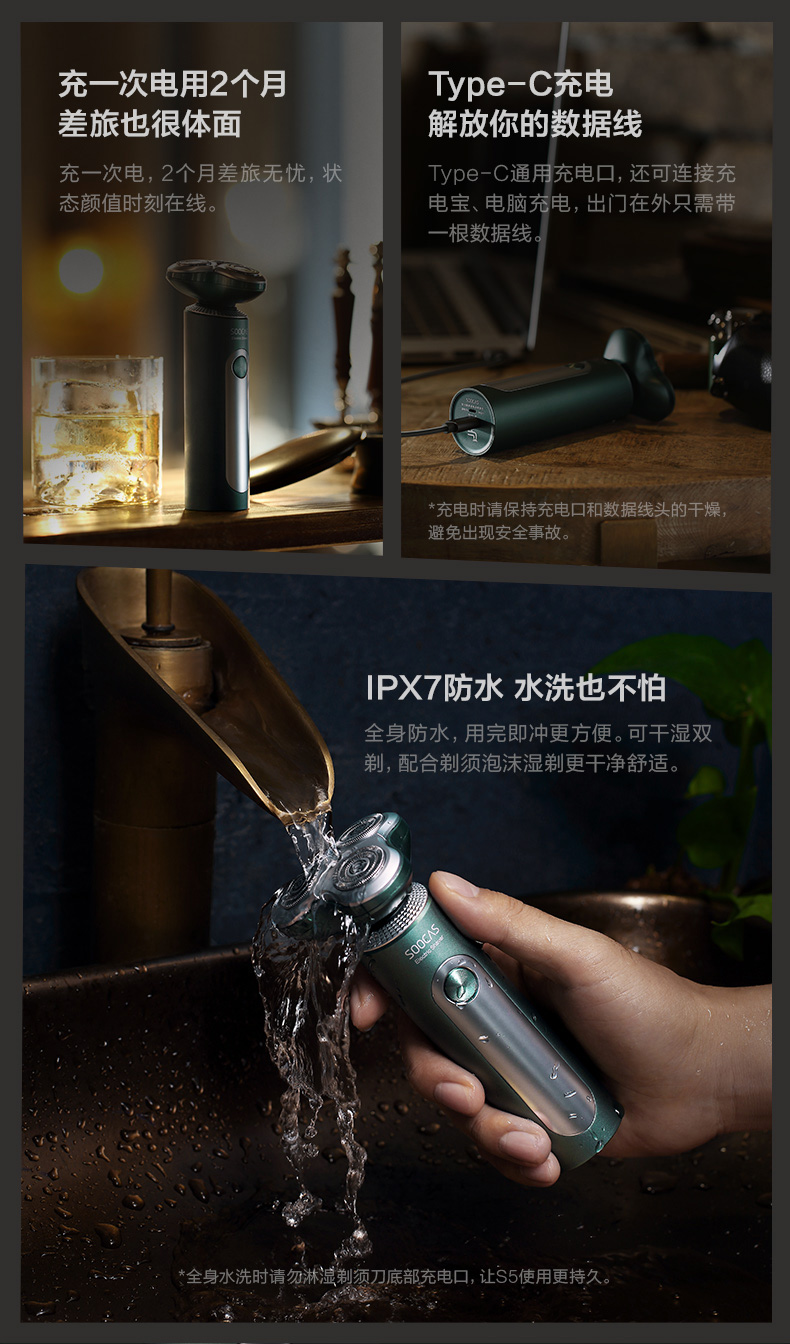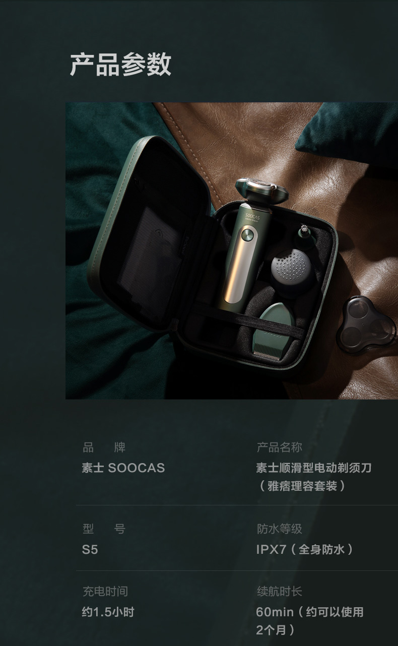 素士小米生态企业电动剃须刀S5雅痞理容礼盒版JQR