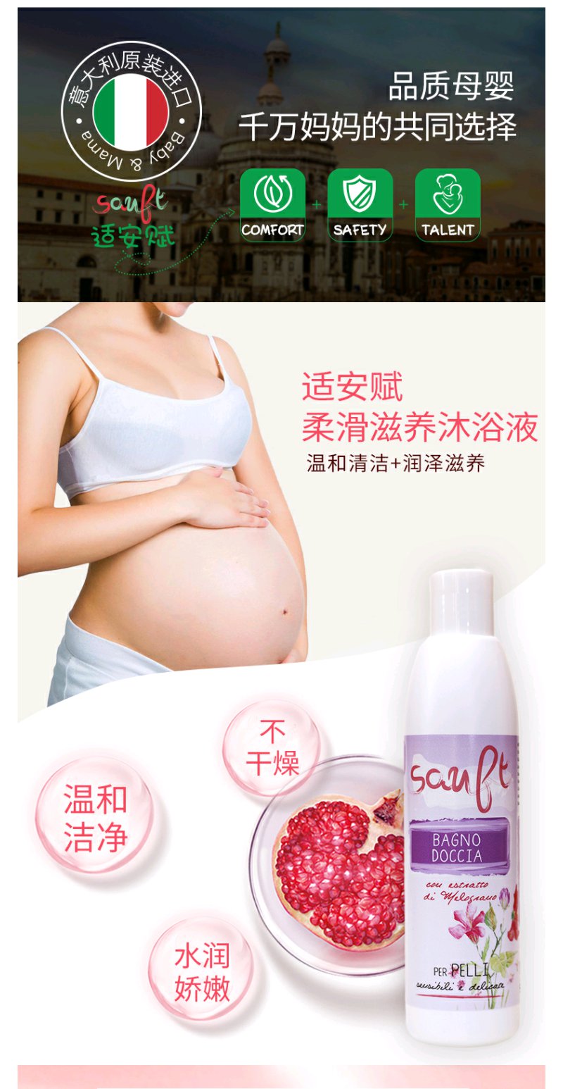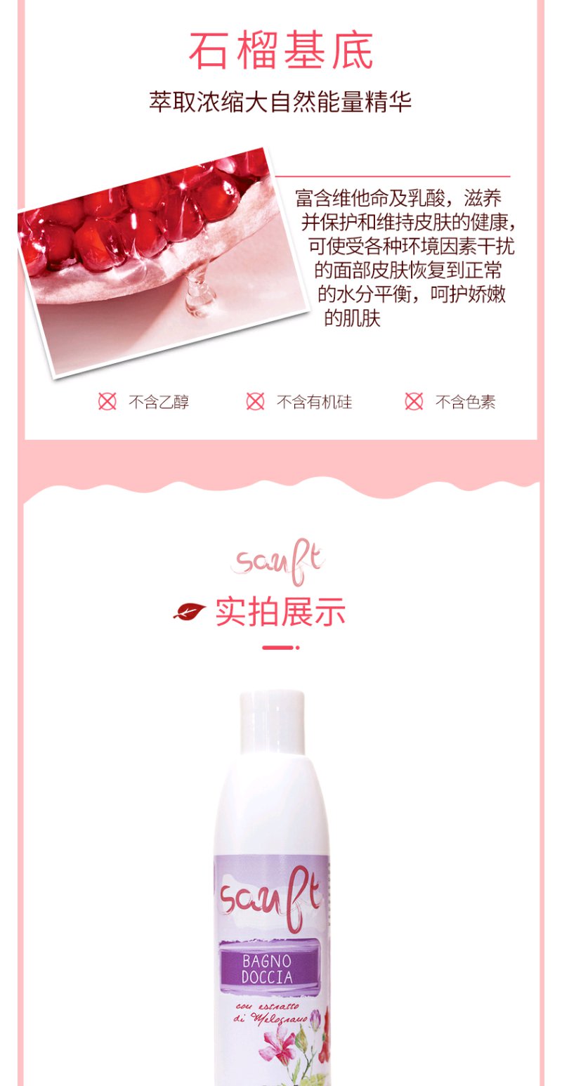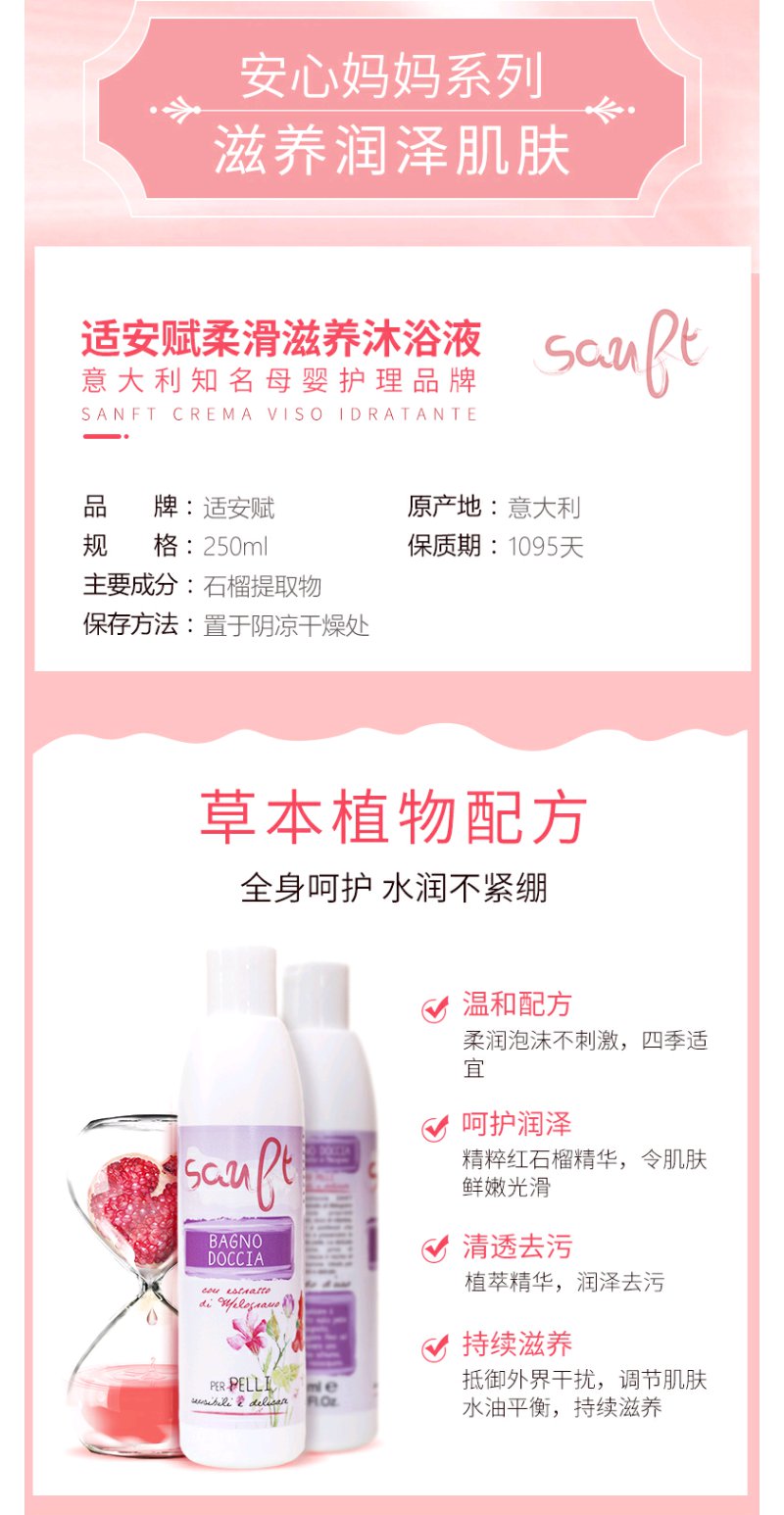意大利适安赋柔滑滋养沐浴液250ml柔润泡沫不刺激红石榴精华水润