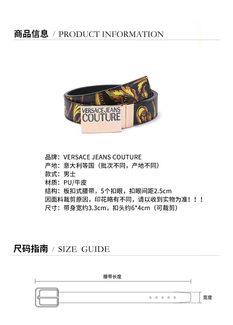 VERSACE JEANS COUTURE 范思哲【22春夏新款】男士REGALIA BAROQUE双面皮带腰带印花 72YA6F32 ZP103