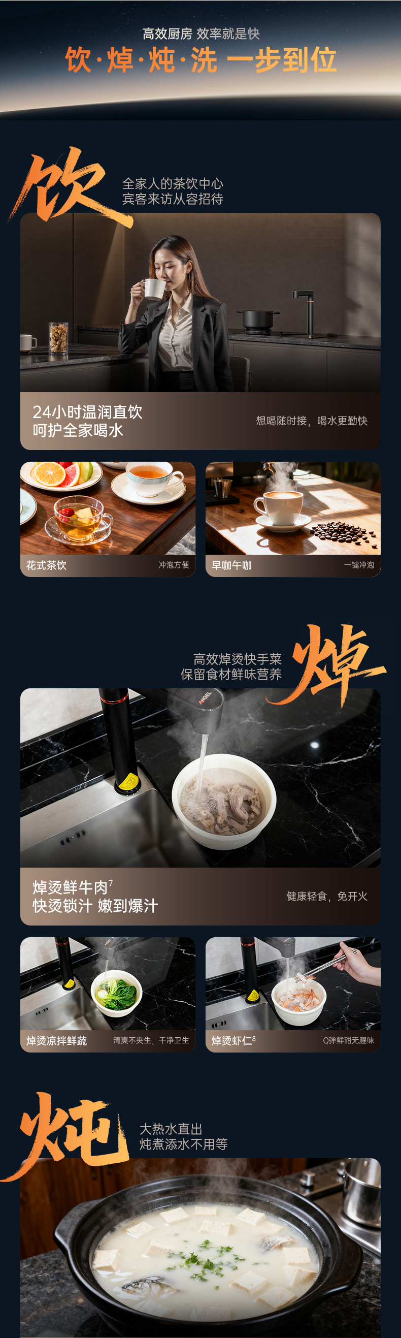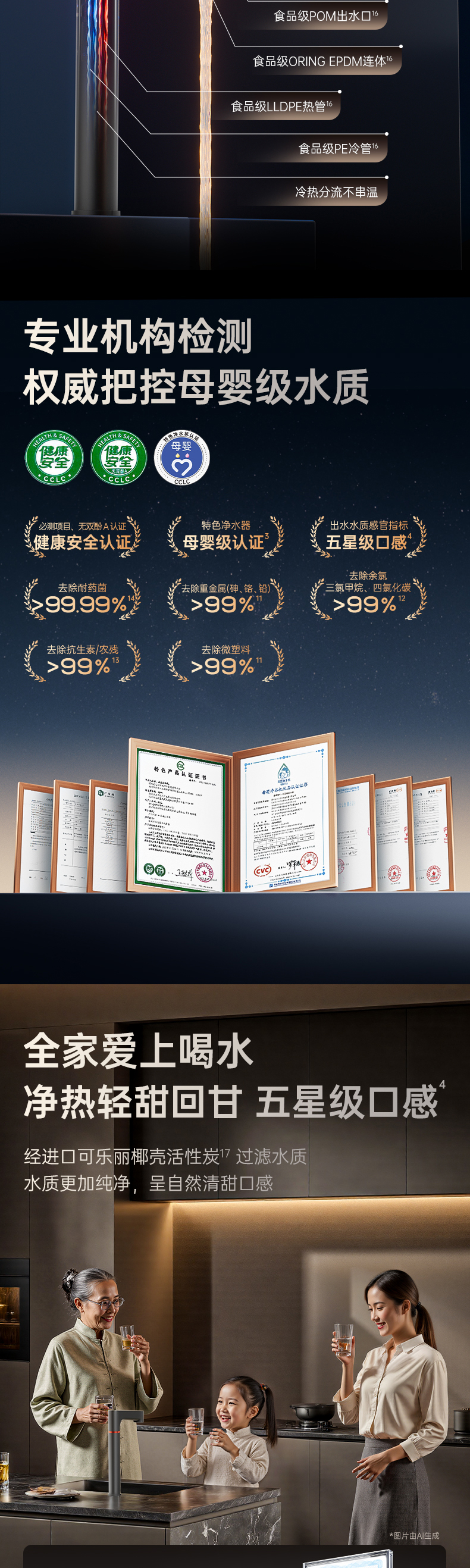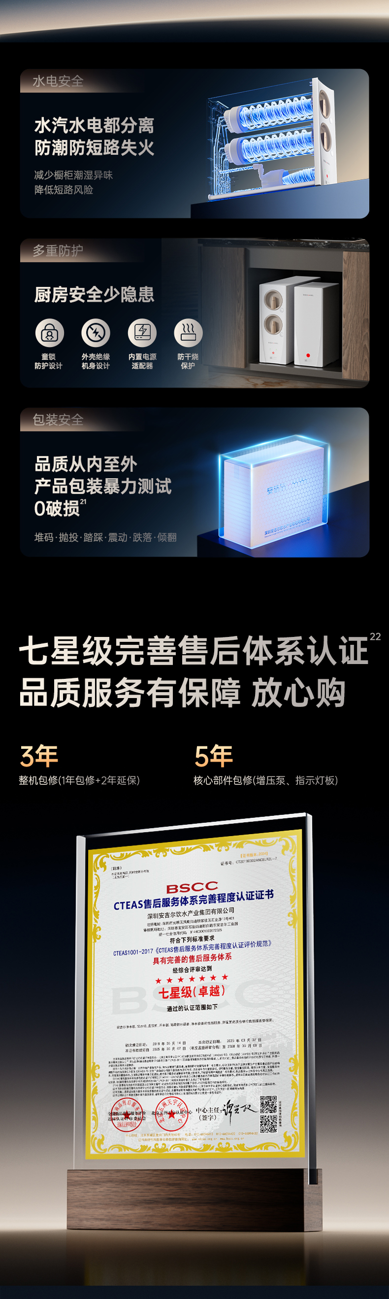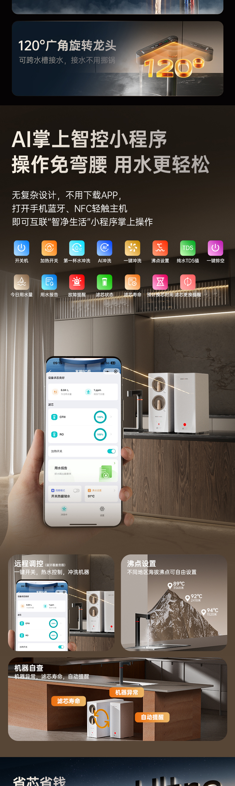安吉尔加热净水器玉龙Ultra1200G厨下直饮机2200G温热水流速