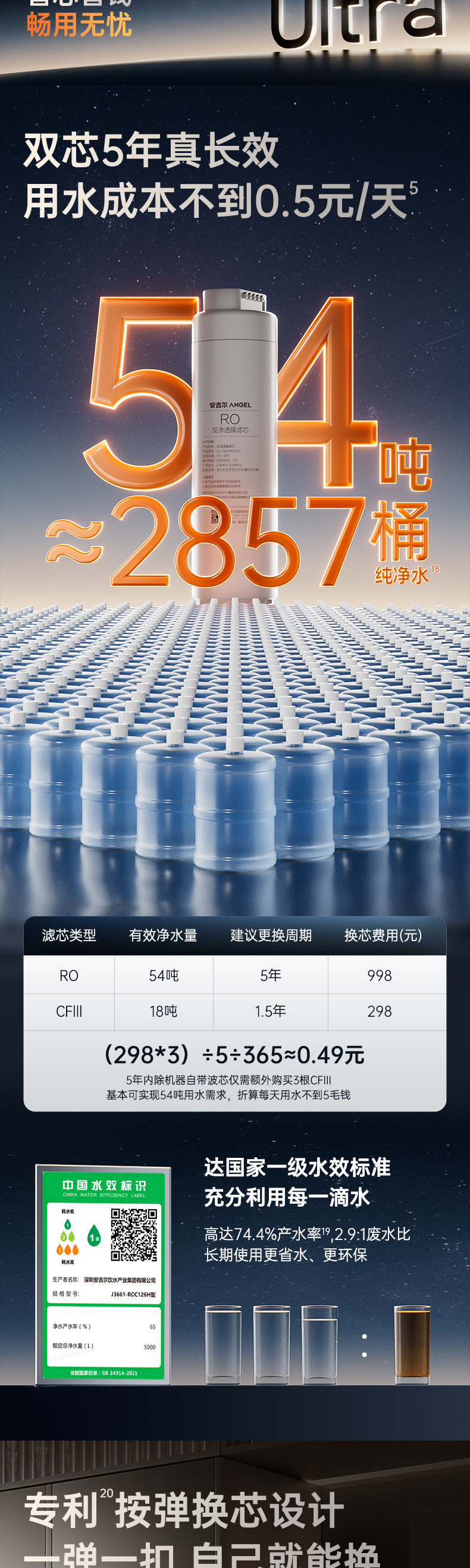 安吉尔玉龙Max1200G家用直饮反渗透净水器