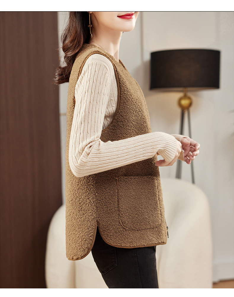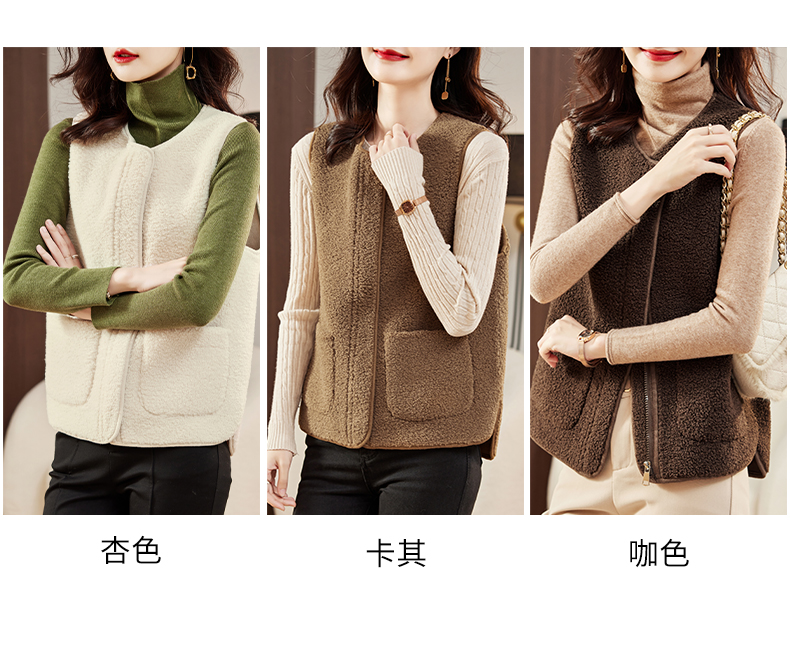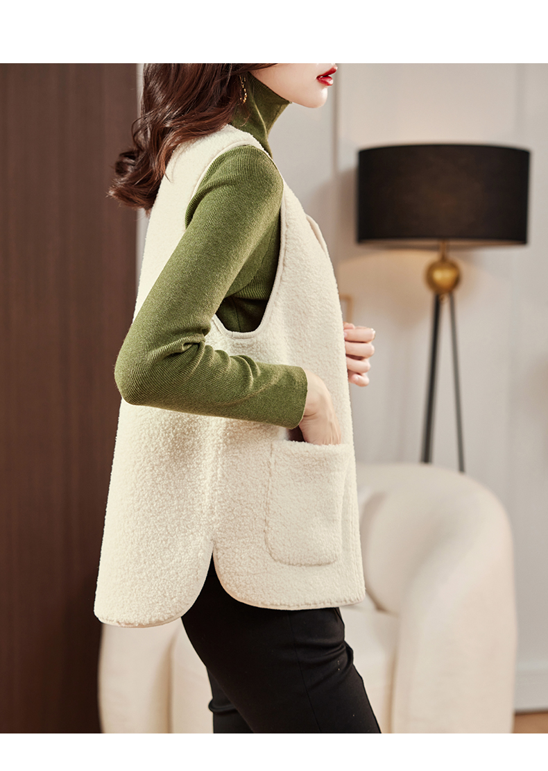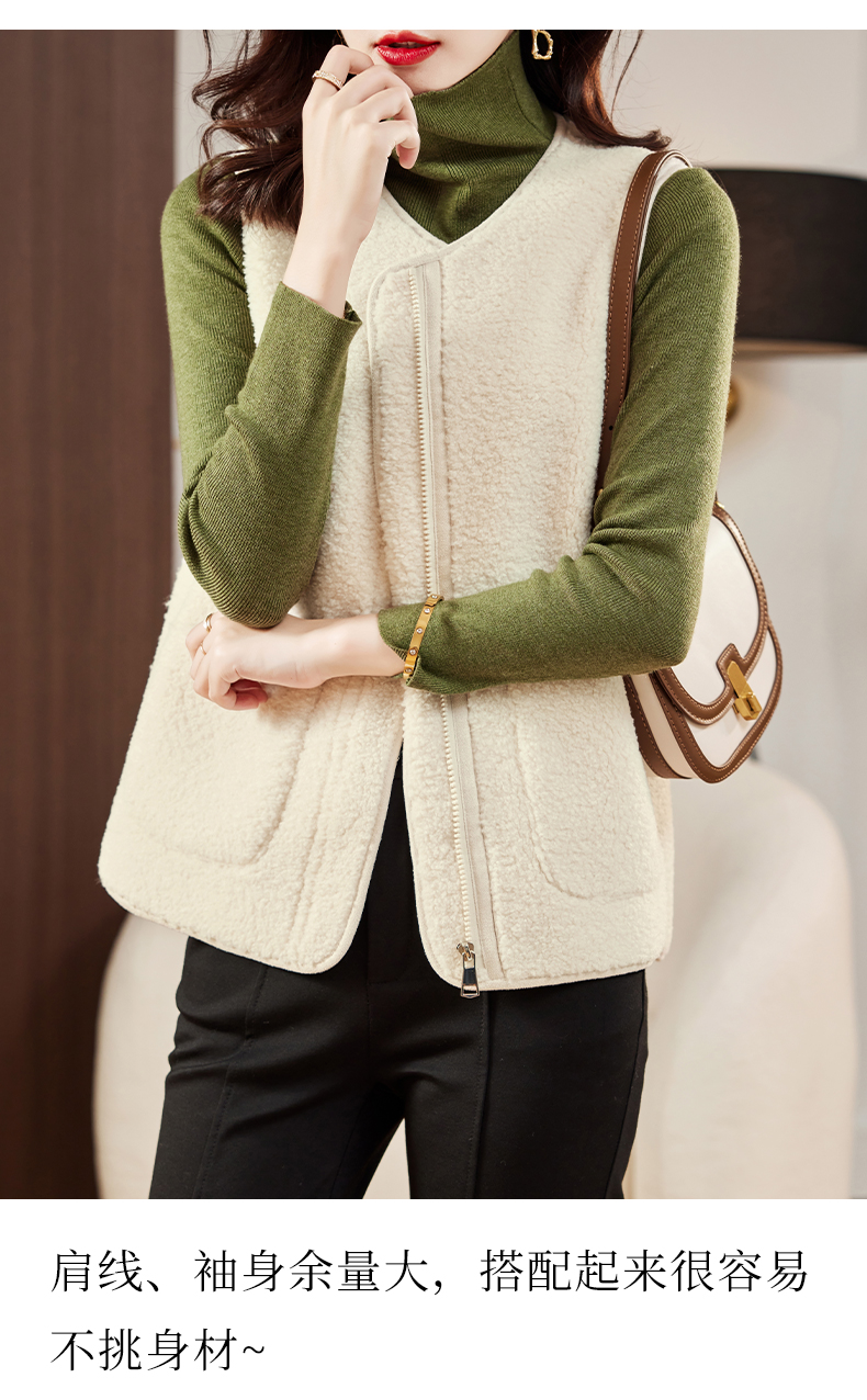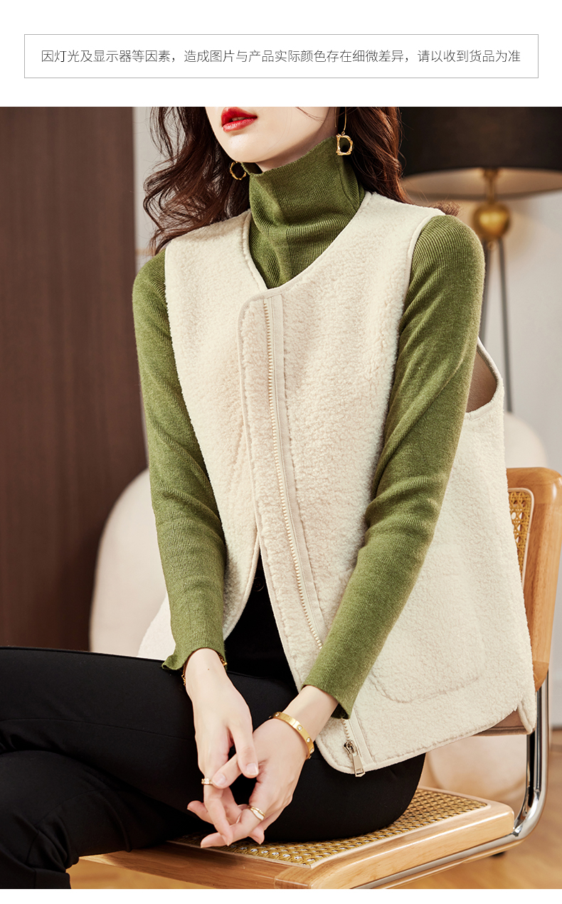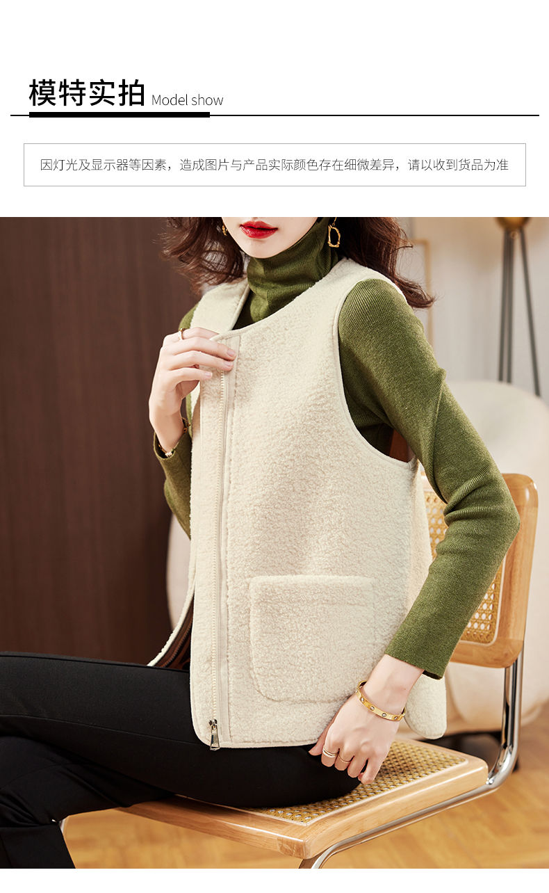 休闲仿羊羔绒马甲文艺宽松口袋撞色马甲显瘦外套HR-22Q33