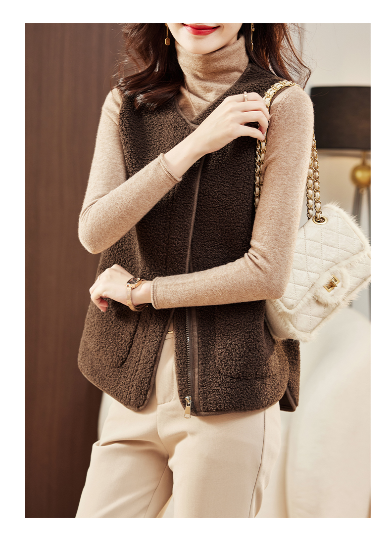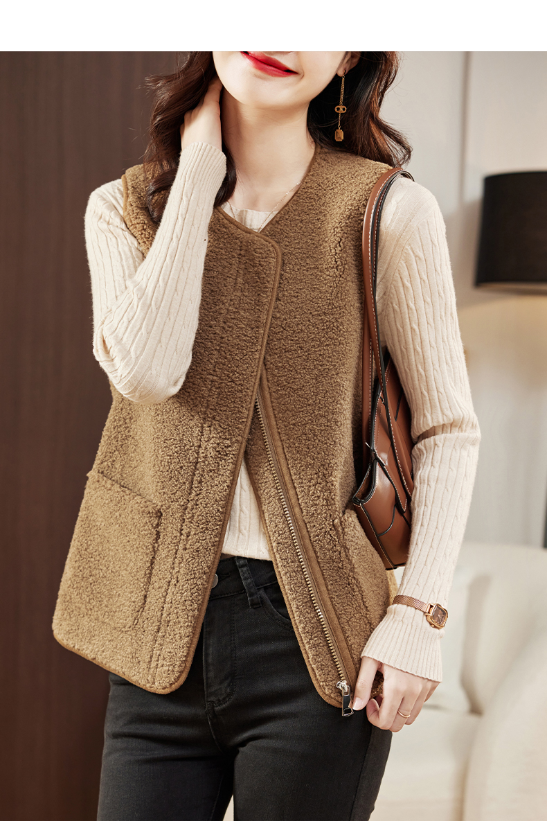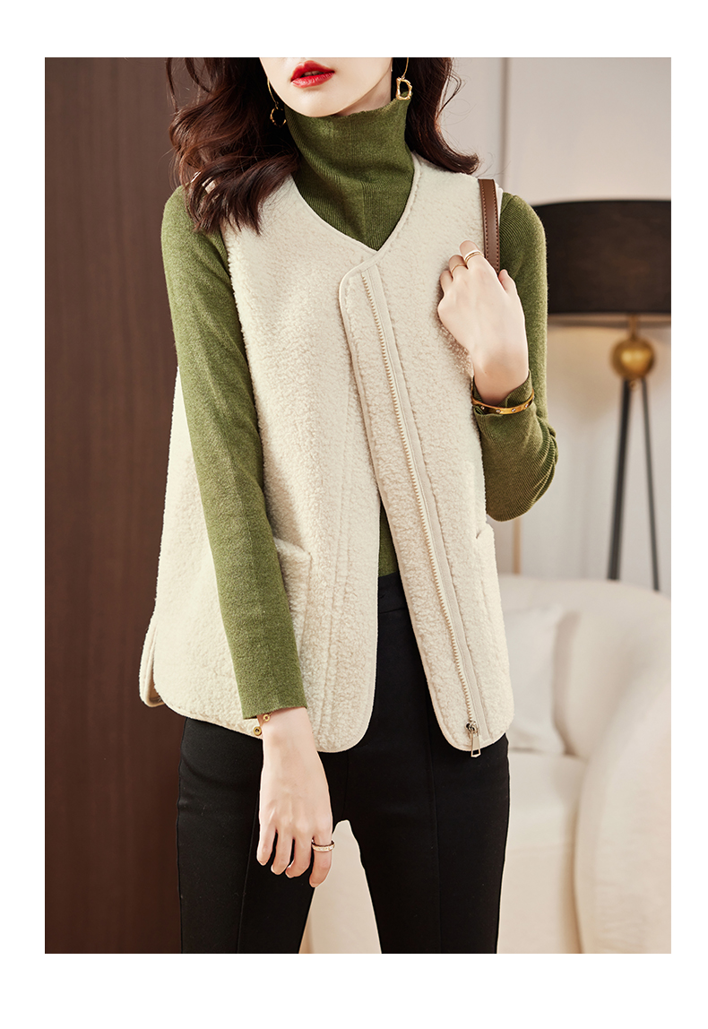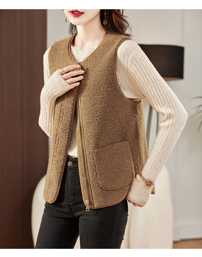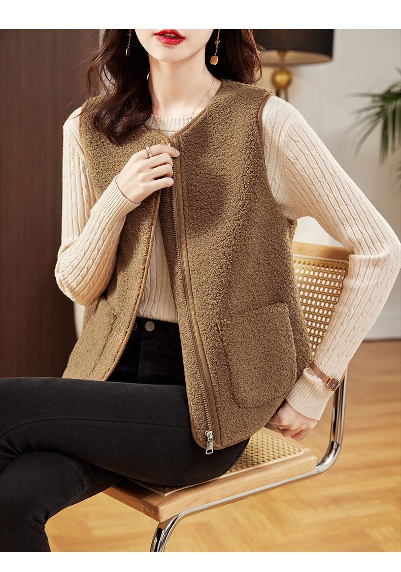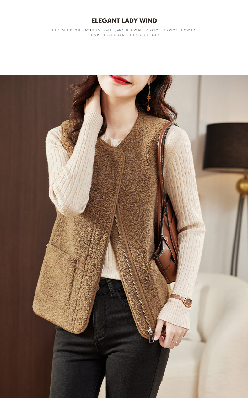 休闲仿羊羔绒马甲文艺宽松口袋撞色马甲显瘦外套HR-22Q33