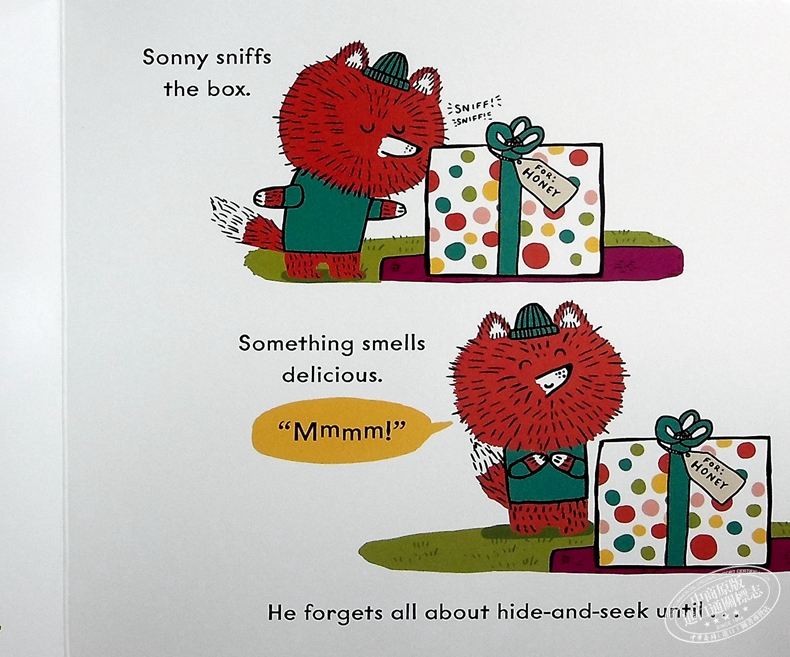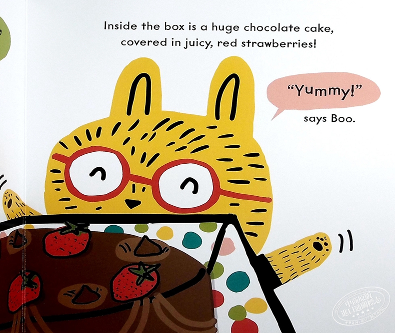 桑尼无法抗拒打开它……然后他无法抗拒他在里面发现的东西。这是一个美味的巧克力蛋糕!