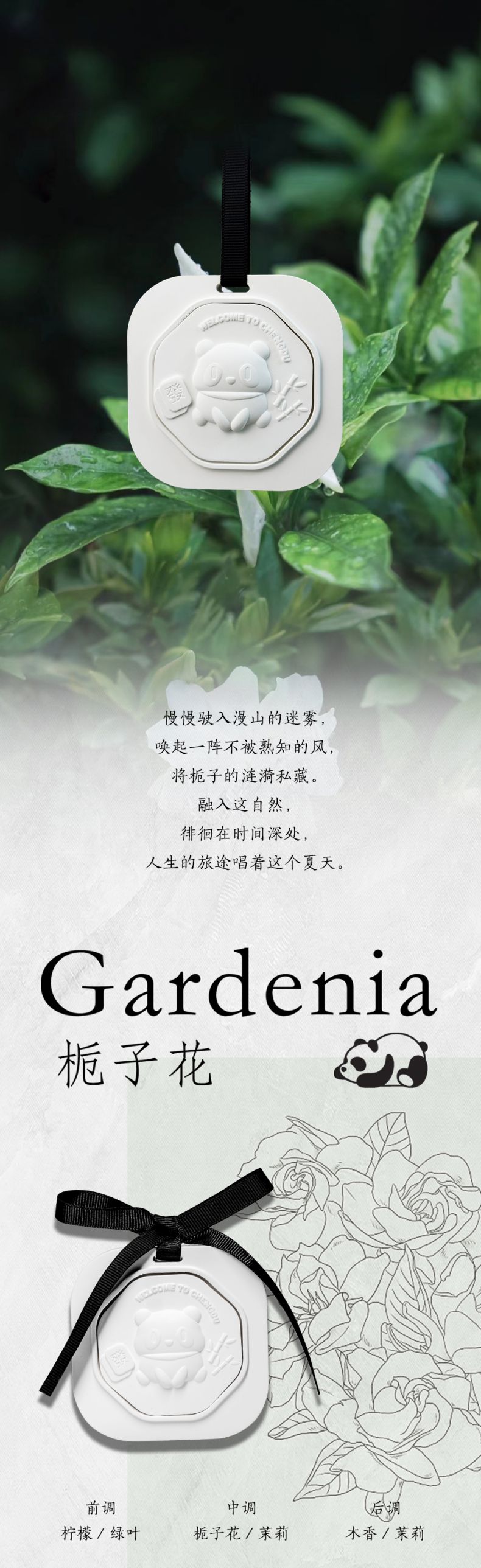 Loysu/珞书 熊猫成都特色无火扩香石膏香薰 车载或家用(3种味道可选,新旧版本随机发))