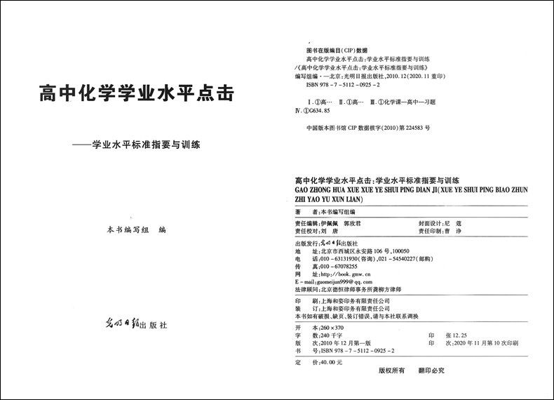 2020修订本高中化学学业水平点击 附参考答案 学业水平标准指要与训练 双基训练+测试卷 光明日报出版社 学业水平考试