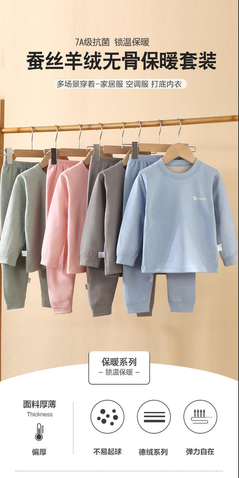 【59元起2套】秋冬加厚儿童无骨双面羊毛蚕丝睡衣 秋衣秋裤保暖内衣套装