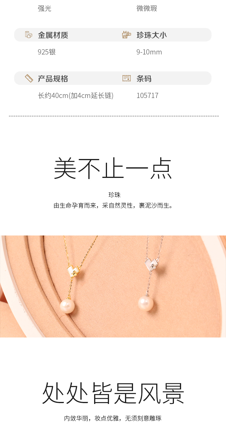 美裕 【追蝶】银925淡水珍珠链坠 9-10mm白105717