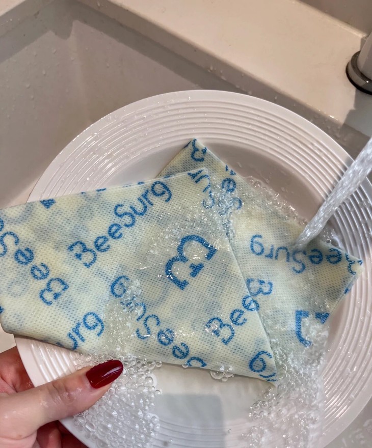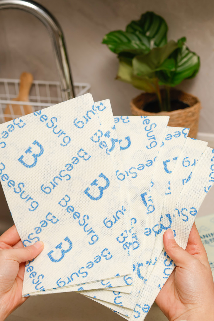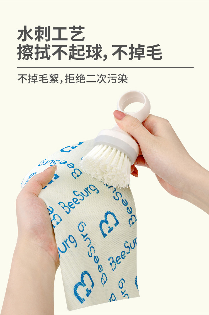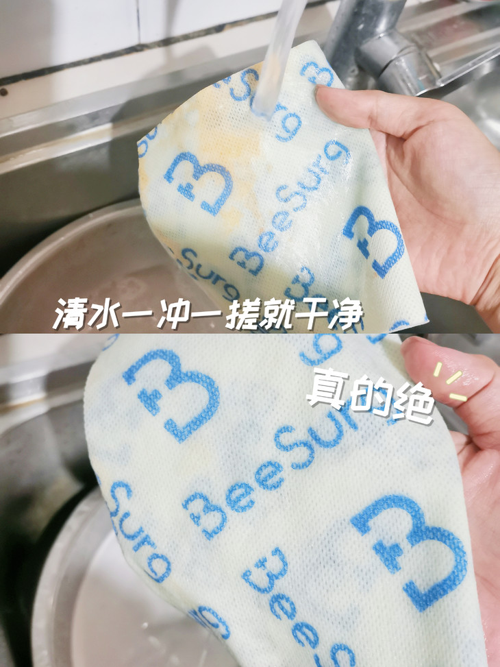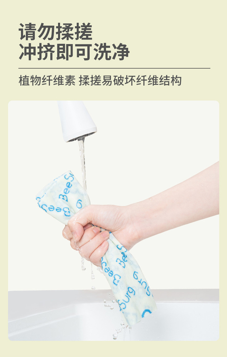 ✅水刺复合工艺,耐用不掉毛不飞絮 能做到吸水不变形、反复使用不破损 全靠它硬核的水刺复合工艺‼️ 这块抹布的表面摸起来特别平整柔顺 完全不像普通抹布那样粗糙,擦碗擦灶台的时候 不管怎么用力擦 都完全不起球、不掉毛、不掉毛絮❗ 再也不用担心擦完的碗碟上粘满细细的抹布絮 也不用怕擦完的台面变成“毛絮战场” 彻底杜绝了二次污染的麻烦! 它的纤维根根分明,韧性超强 就算反复揉搓、多次水洗,也不会变得破破烂烂 我家那块已经用了快十天 除了边缘有一点点磨损,整体还是完好无损的 比那些一洗就烂的一次性抹布耐用十倍不止! 这里必须划个重点‼️因为是植物纤维素材质 清洁时千万别揉搓,冲挤就能洗净 揉搓容易破坏纤维结构,记牢这一点能用更久!