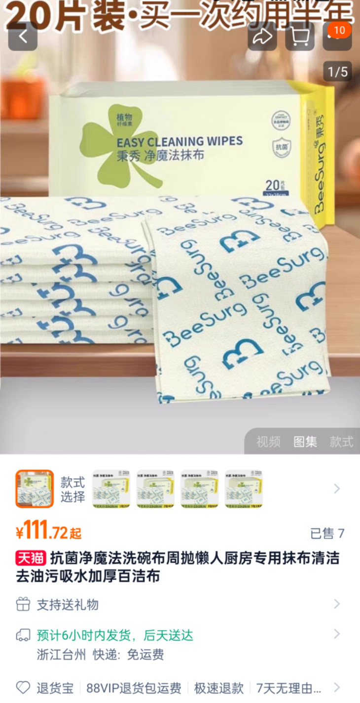 ✅抗菌周抛设计:卫生耐用=性价比翻倍 普通抹布用3天就发臭、滋生细菌,得频繁更换 反而更费钱 这款直接精准帮你解决! 它采用周抛设计,一片能用7-10天 一包20片能用上大半年 算下来每天成本才几毛钱 比反复买普通抹布划算太多。